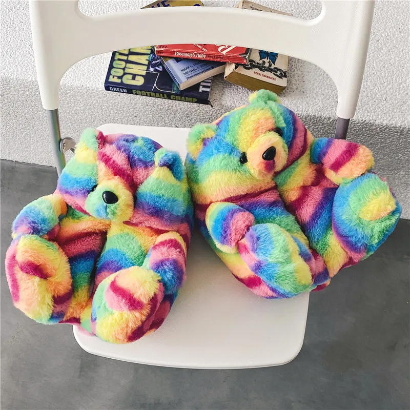 Women Fashion Sneakers2021 Women Teddy Bear Plush Slippers Cartoon Cute Bear House Slipper U