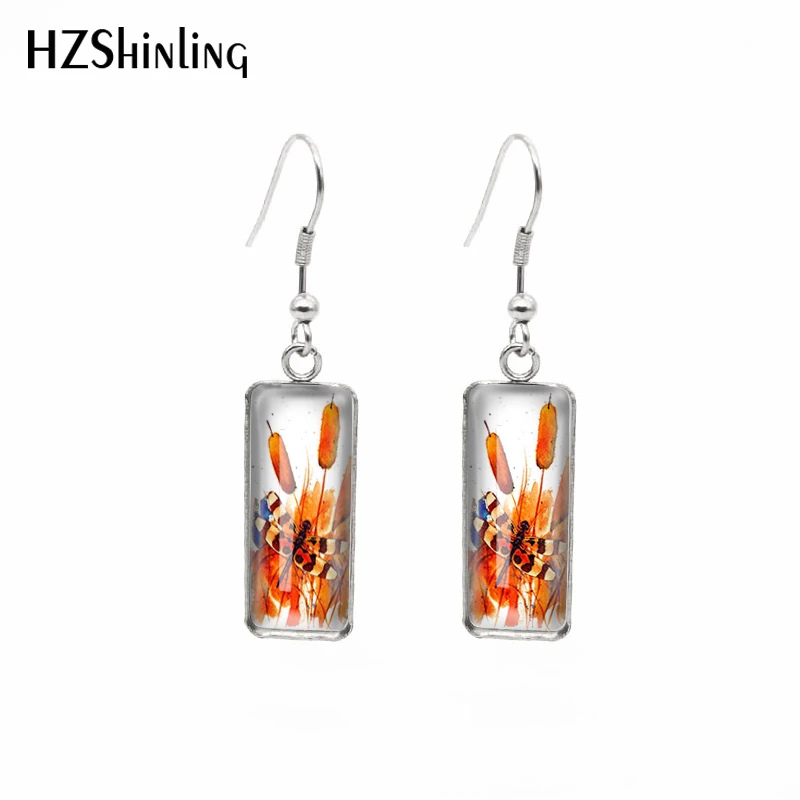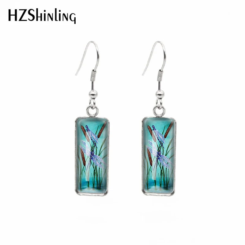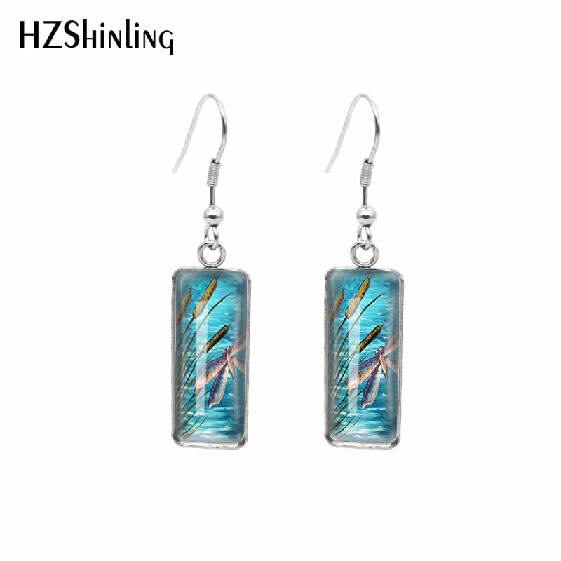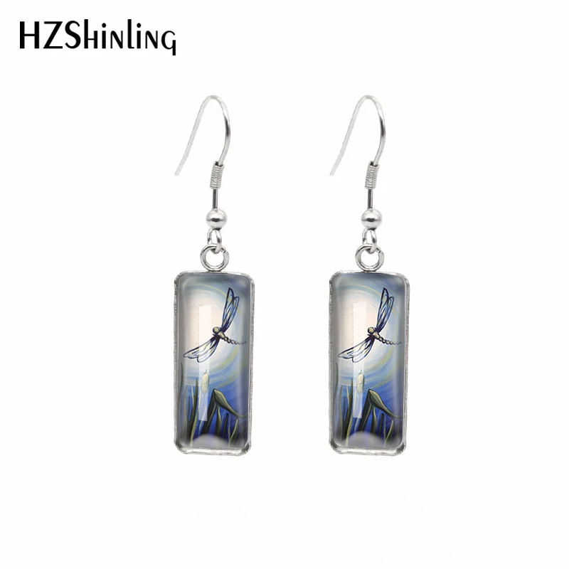 Новинка 2021, прямоугольные серьги в виде стрекозы с кошачьими хвостами, серьги с художественным узором и крючком для рыбы, стеклянный кабошон, ювелирные изделия ручной работы