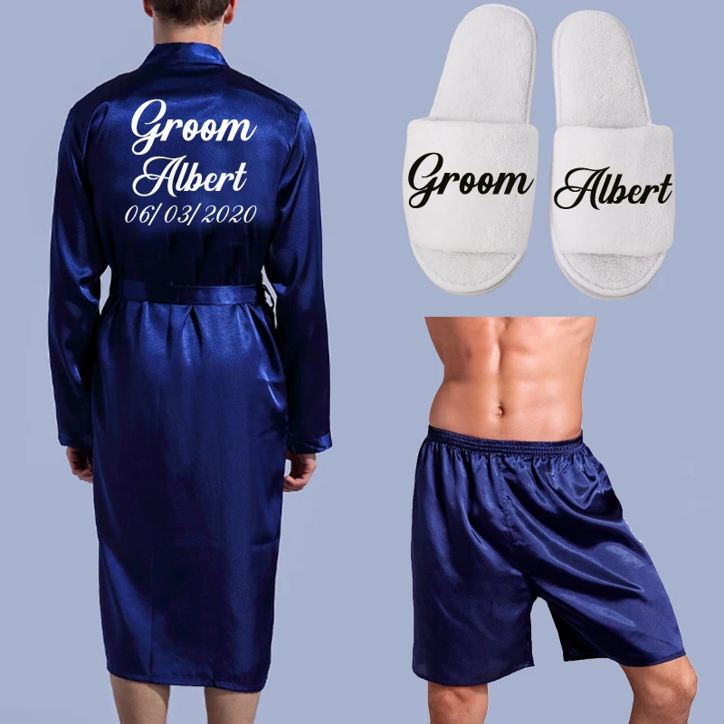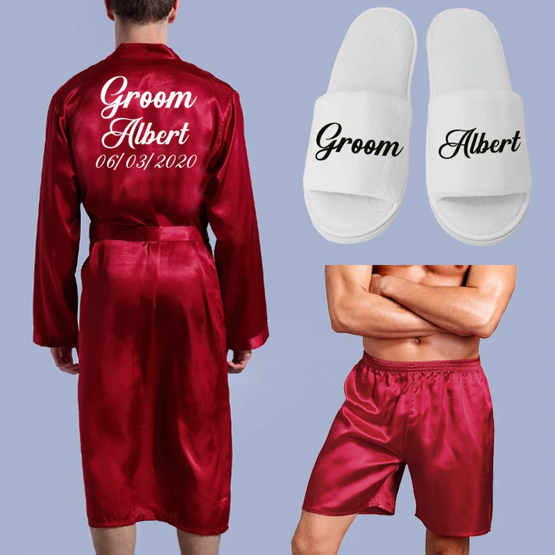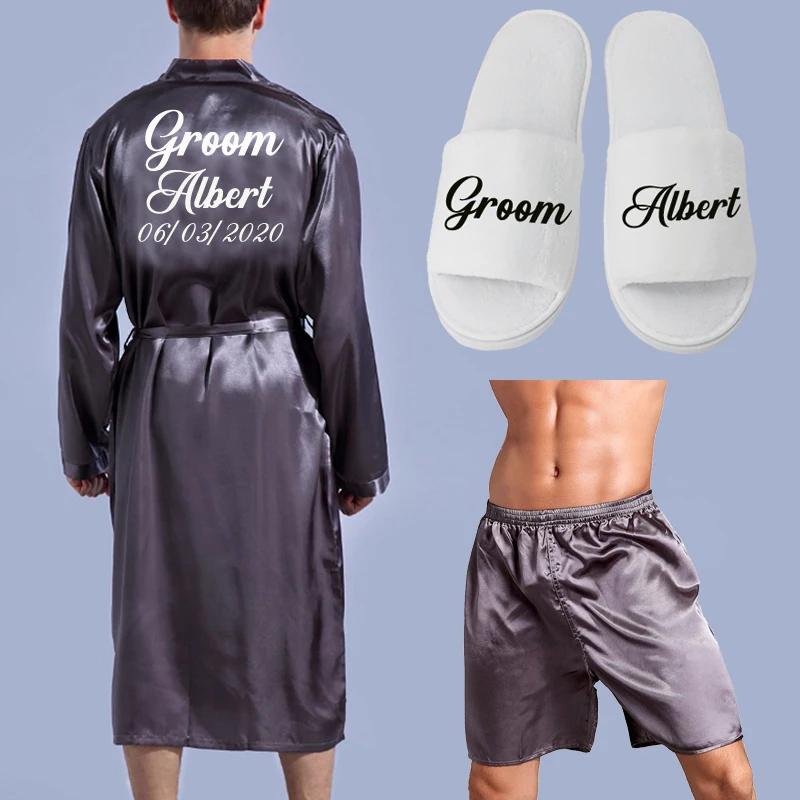 Мужской халат на заказ, имитирующий Шелковый мягкий персонализированный домашний банный халат, ночная рубашка для мужчин, кимоно, индивидуальное название для свадебной вечеринки