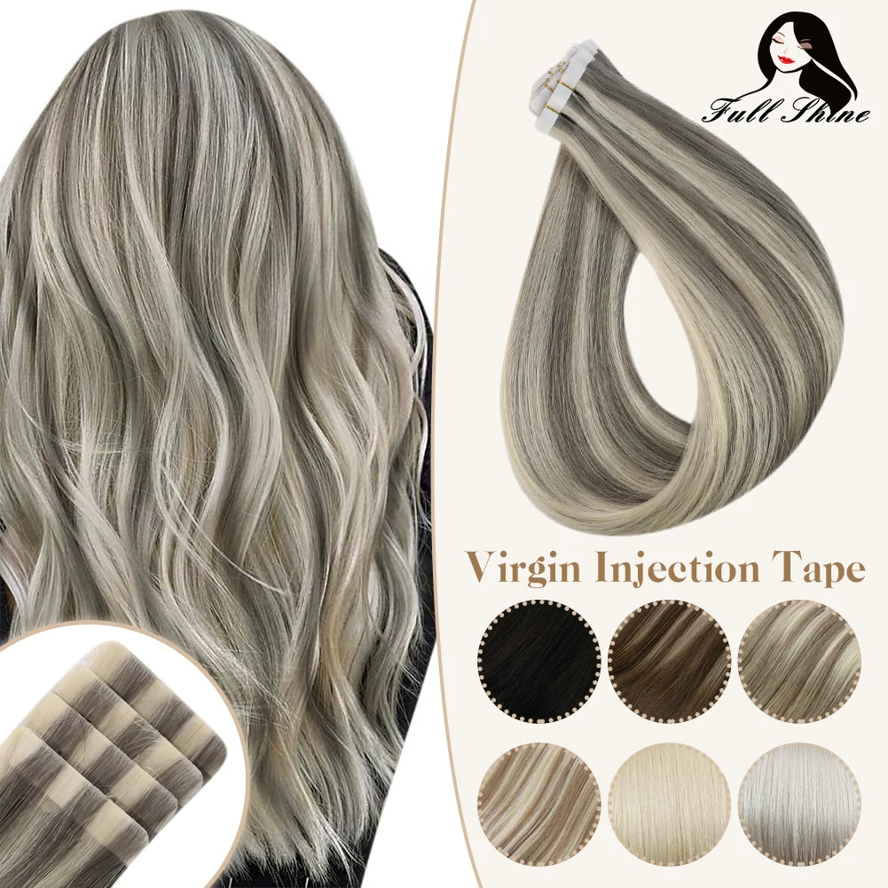 Полный блеск инъекции ленты в клеи Virgin человеческие волосы для наращивания блонд цвет невидимые бесшовные ПУ кожи уток 10А класс волос