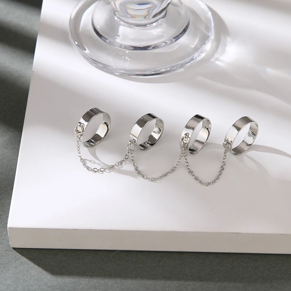 Sindlan 4 шт. Панк Серебряный цвет цепь кольца для женщин простой х...