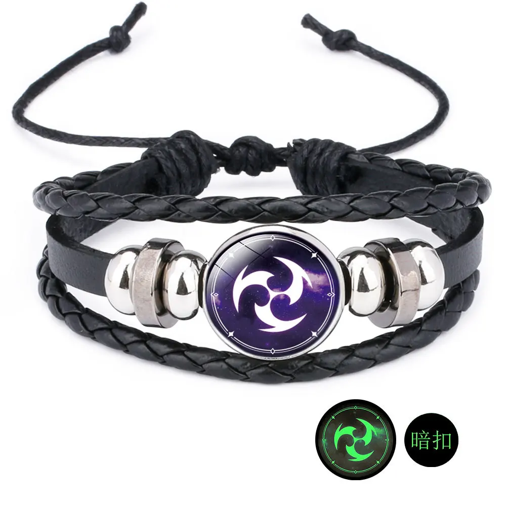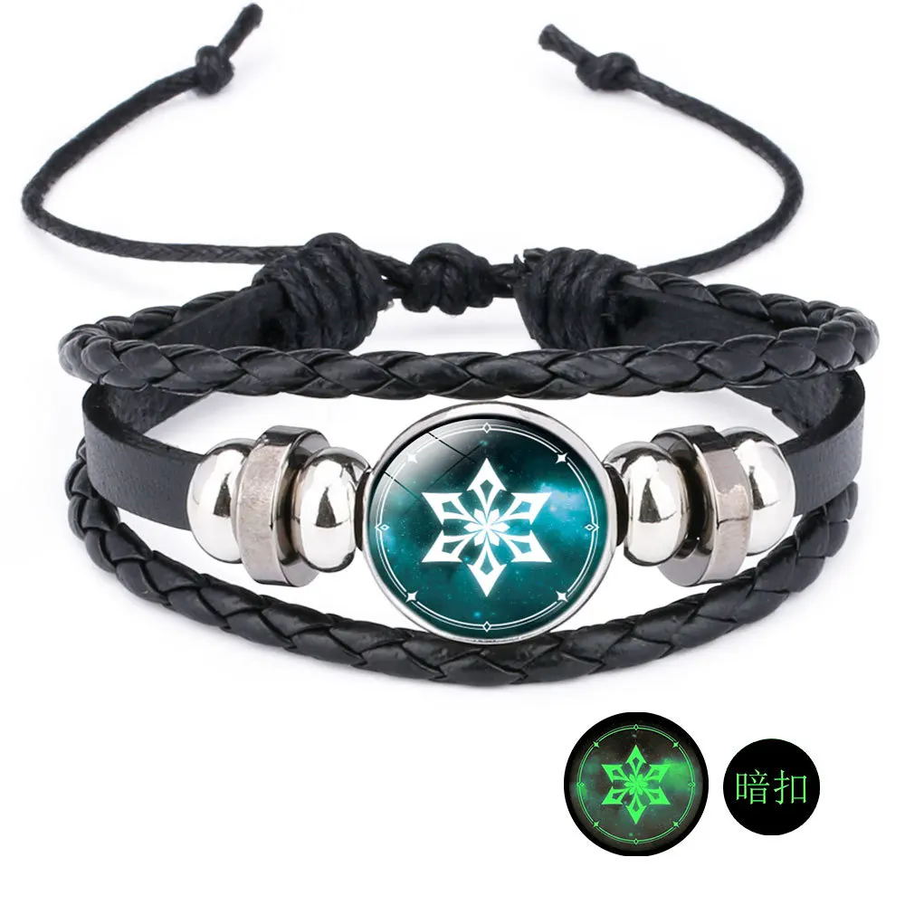 Мужской регулируемый браслет Genshin Impact, светящийся кожаный бра...