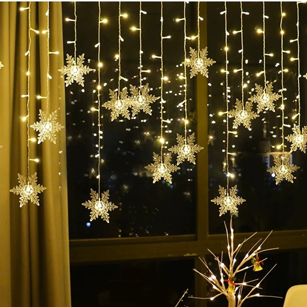 Рождественская светодиодный ная гирлянсветильник со снежинками, s мигасветильник гирлянда, s занавеска, водонепроницаемая гирлянда для праздника, вечеринки, соединяемая волнистая гирлянда, 4 м