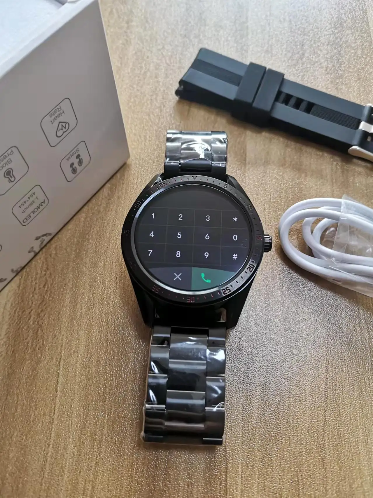 Мне нравятся эти часы! Это так же, как на картинке. Умные часы с сенсорным экраном 454*454 AMOLED, сенсорный экран очень хороший. Он имеет несколько спортивных режимов, часы могут воспроизводить музыку, совершать звонки, отвечать на звонки, пульс, кровяное давление, мониторинг уровня кислорода в крови и другие функции. Он отличается от тех, кого вы когда-либо видели, легко соединяется с телефоном и может отслеживать ваши упражнения. Вы можете прочитать ваши сообщения без необходимости проверять свой телефон, что полезно на работе. Аккумулятор долгий, он работает около 3-5 дней, все зависит от его использования. Его очень легко зарядить, так как он имеет кабель, который отлично переносит магниты и адаптируется, в течение 1 часа мы заряжаем аккумулятор. Часы доступны на нескольких языках, включая испанский, и ссылка очень проста. Я бы порекомендовал его.