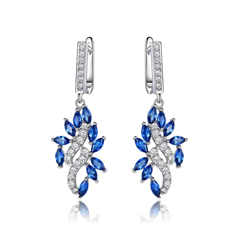 Женские серьги-подвески с сапфиром, из серебра 925 пробы