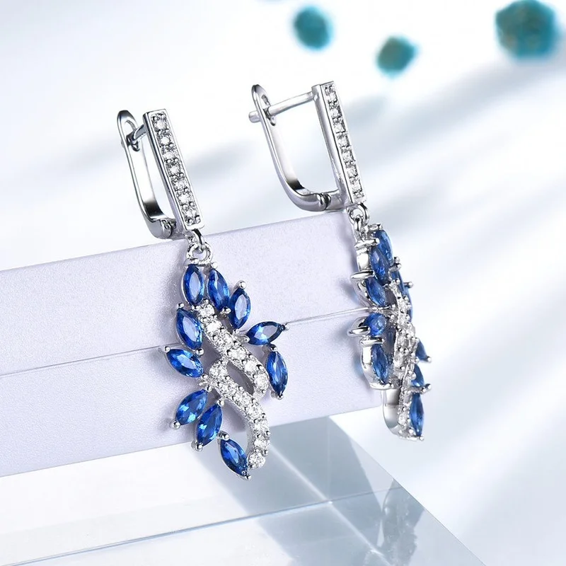 Женские серьги-капельки UMCHO с синим сапфиром из настоящего серебр...