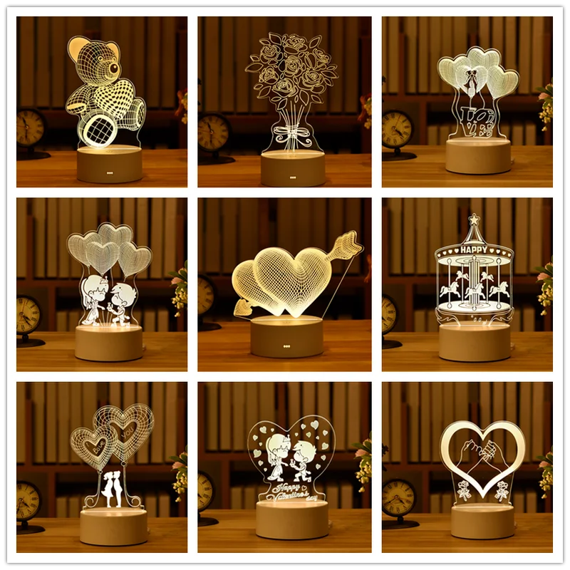 Акриловый светодиодный ночсветильник 3D, романтическая декоративная...