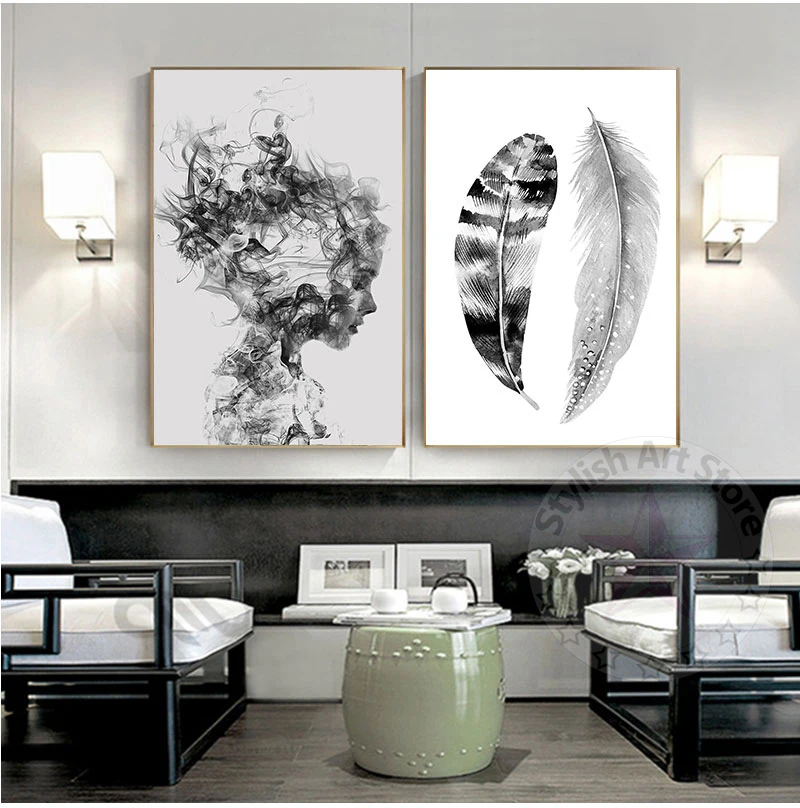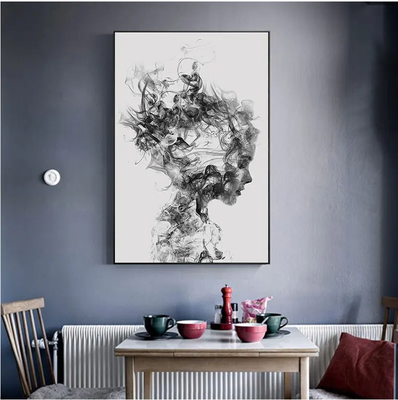 Плакаты на холсте с изображением женщины, черного, белого, серого дыма