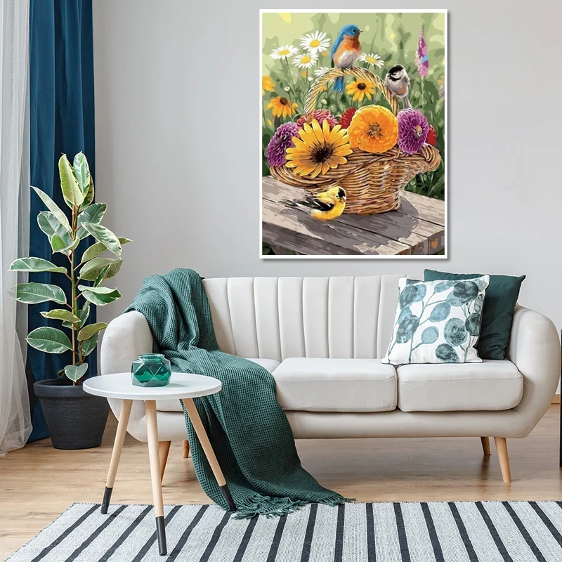 DIY Алмазная картина Алмазная полная Алмазная круглая Алмазная крестовина для гостиной украшения поделки Цветочная корзина