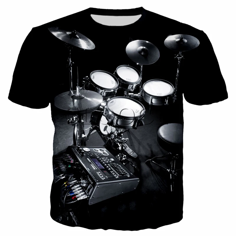Футболка с барабанным барабаном для мужчин и женщин, повседневный свободный удобный топ, рок-поп музыкальная группа, большой размер, в стиле хип-хоп, с коротким рукавом, лето