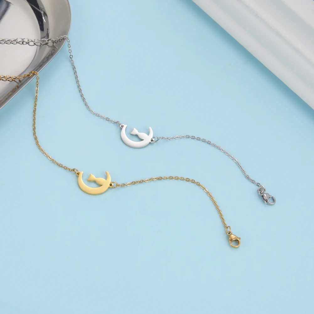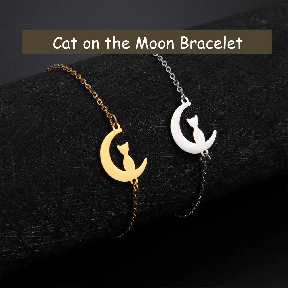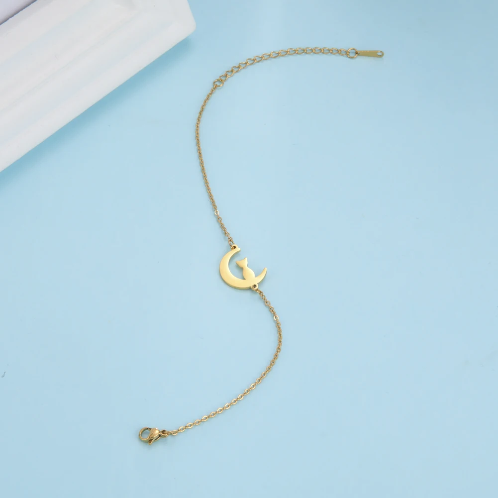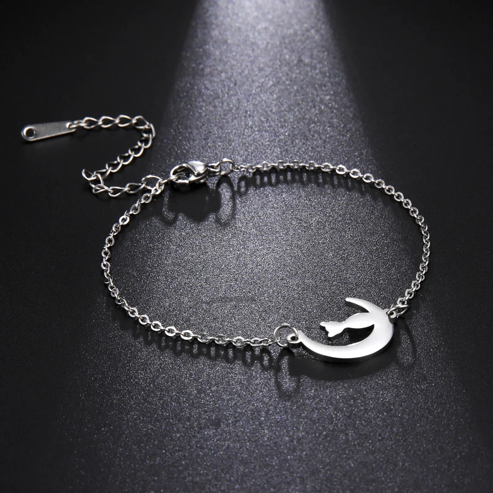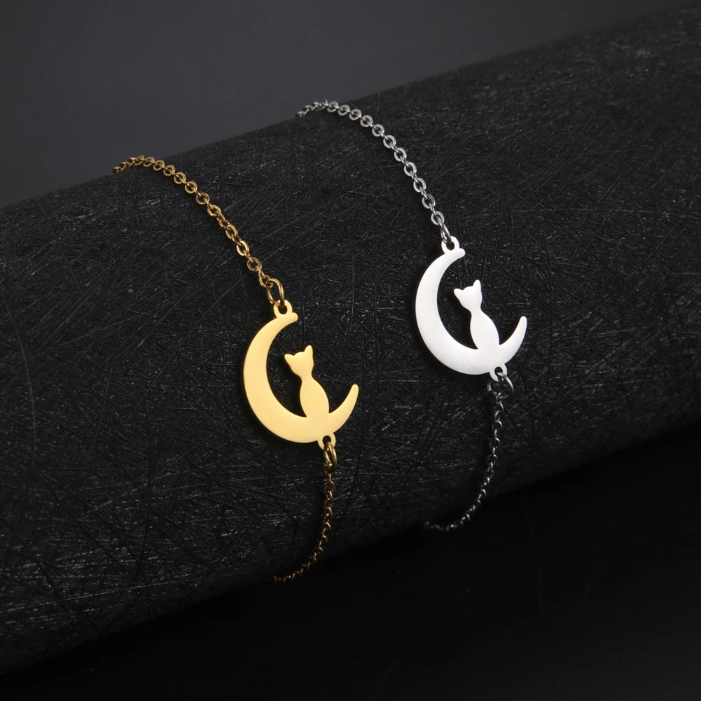 Браслеты Cazador из нержавеющей стали с изображением милого кота на Луне для женщин, ювелирные изделия с изображением животных, подарки на день рождения и День Святого Валентина, оптовая продажа, 2022