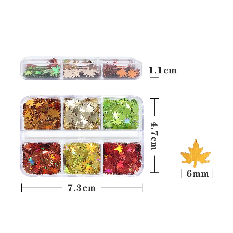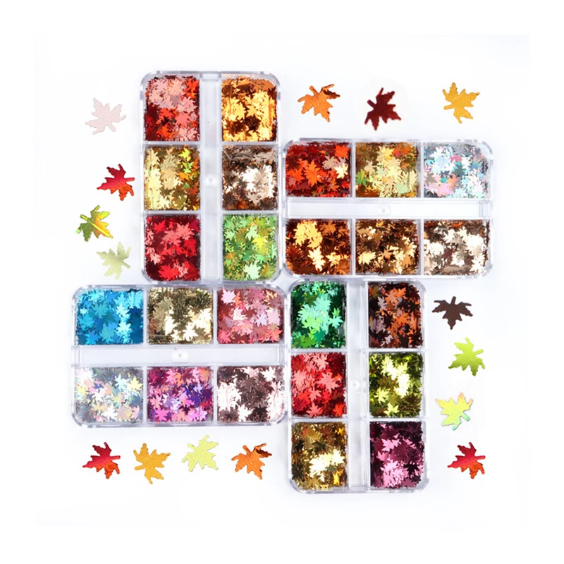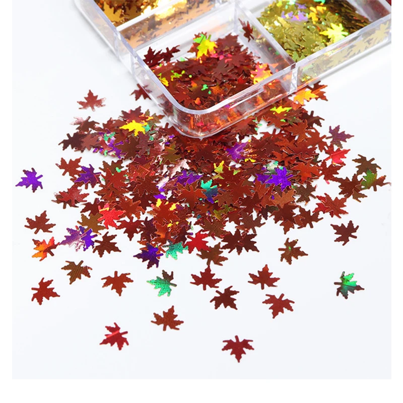 Голографические кленовые листья, 6 ячеек, блестки для ногтевого дизайна, лазерные кленовые листья, блестки, Осенний маникюр, 3D украшение для ногтей