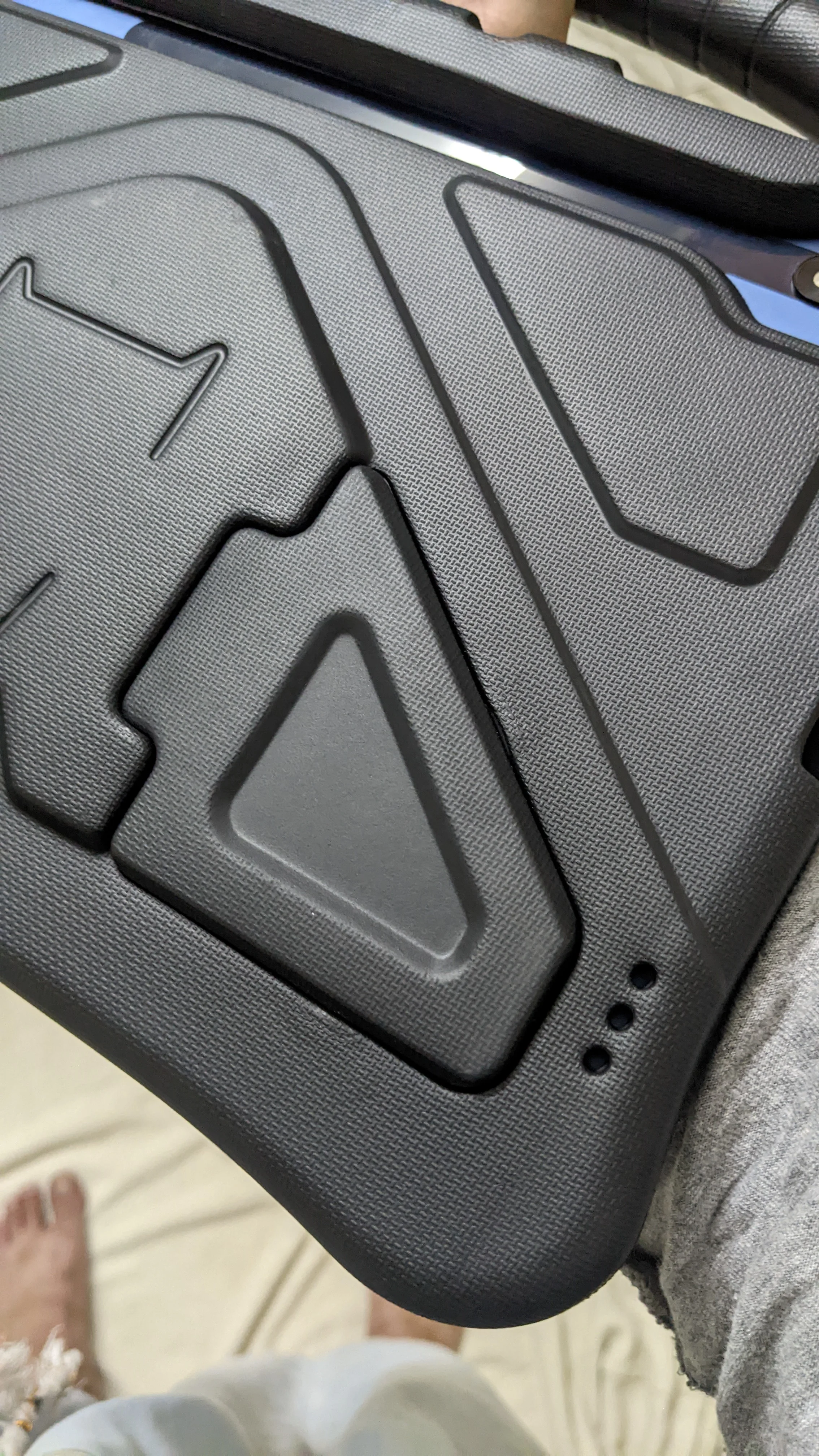 Мне нравится тот факт, что Чехол легкий для переноски, включая гаджет/планшет. Но я просто хочу прокомментировать верхнюю часть дела, это немного свободно. Как будто не подходит. Я не знаю, если это должно быть так, но это нормально. Но меня это беспокоит, когда я иногда вижу это.