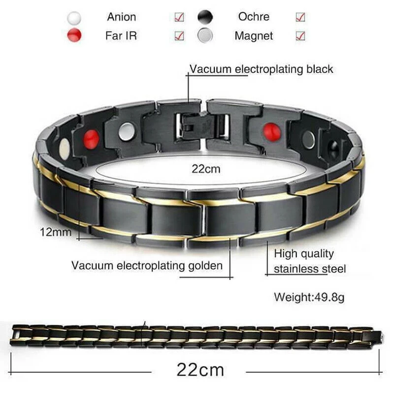 14020972277 Описание:Используя принцип акупрессуры, износ браслета способствует увеличению зоны дыхания, тем самым устраняя основную причину храпа.Точка давления внутри браслета содержит 2 магнита, которые добавляют эффект.Массажер шиацу на внутренней стороне кольца действует на чувствительную часть запястья храпа.Для устранения храпа используется древний принцип акупрессуры. Состояние: 100% новое высокое качествоПол: мужчина, женщинаДлина: 21 смШирина: 1,3 смЭнергия: 2000-3500 ионовЦвет: золото/сталь/серебро/черный и золотой/черный Кто должен носить этот Энергетический Браслет:* Если вам нужно использовать компьютер или мобильный телефон в течение длительного времени* Если вам нужно долгое время фокусироваться на своей работе* Если ваша работа требует от вас долго стоять или делать тяжелую работу, если вы человек, у которого всегда холодные руки и холодные ноги* Если у вас нервные нервы, плохое кровообращение, жесткость и боль в плечах и шее.* Если вы слабы от болезни и склонны к простуде.* Если у вас напряженный образ жизни, хотите расслабиться и омолодить.* Если у вас неправильный образ жизни, вы часто теряете сон.* Если вы любите спорт и хотите развивать свои упражнения и фитнес. Преимущество:* Уменьшает мышечное напряжение и увеличивает гибкость-предотвращает травмы* Уменьшает усталость и напряжение, тем самым улучшая способность выполнять оптимальные уровни* Улучшает кровообращение* Уменьшает дискомфорт и улучшает сонПримечание: Этот продукт не может быть погружен в воду Посылка включает в себя:1 * браслет