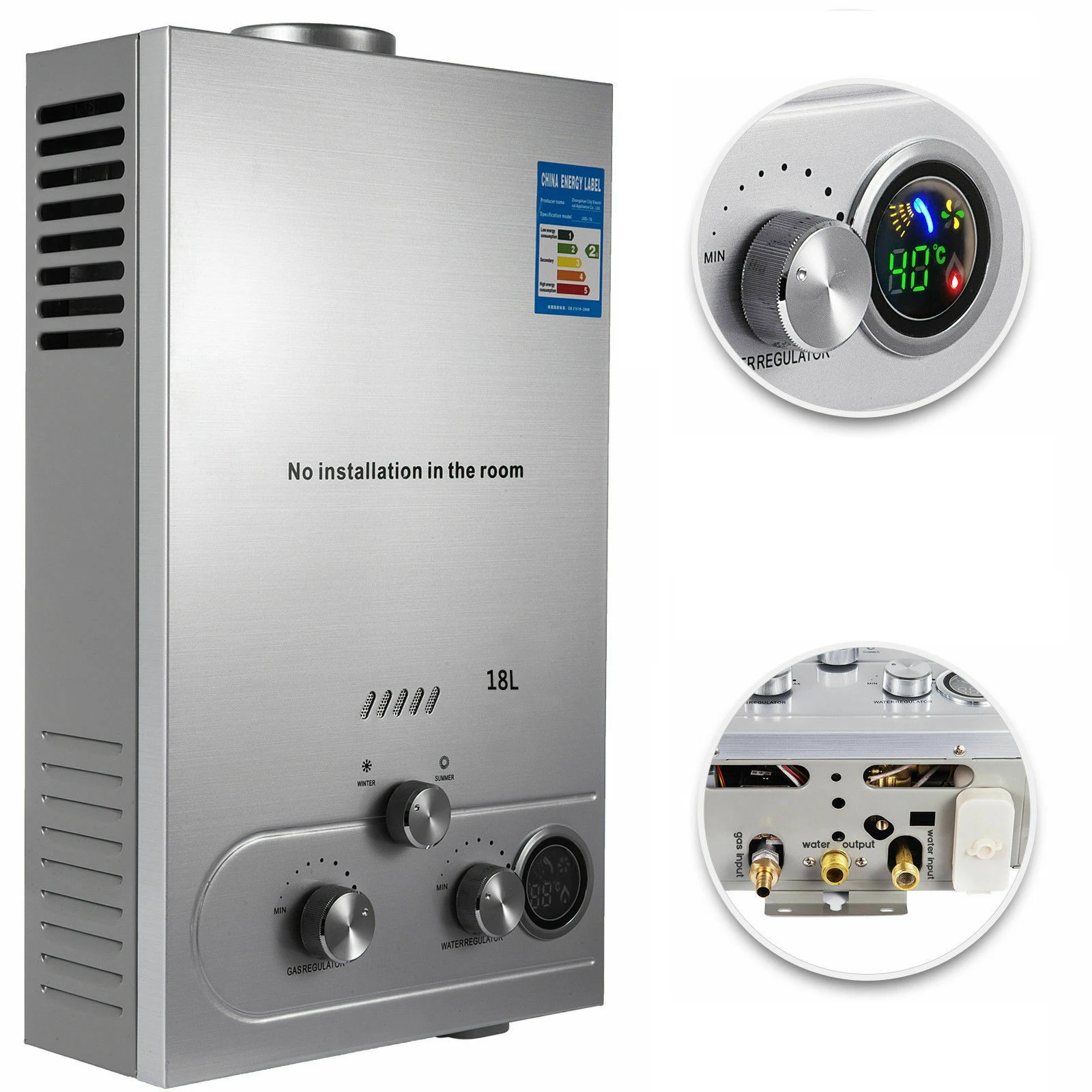 Водонагреватель 18 л, пропановый газ, сжиженный нефтяной газ, безрезервуарный цифровой, для дома, ванной комнаты, мгновенный нагреватель с душевым комплектом