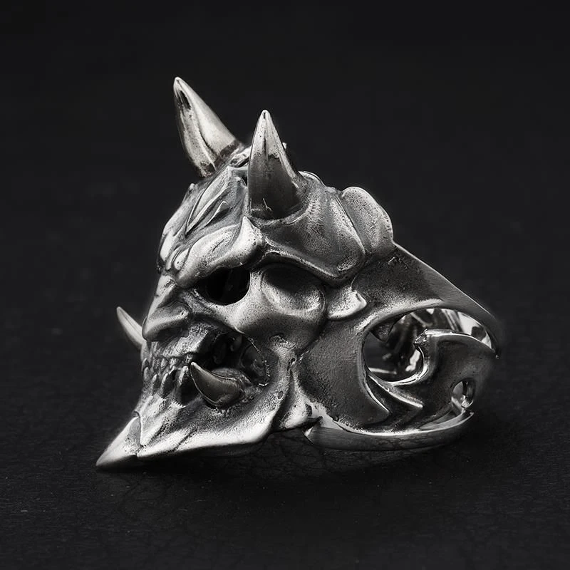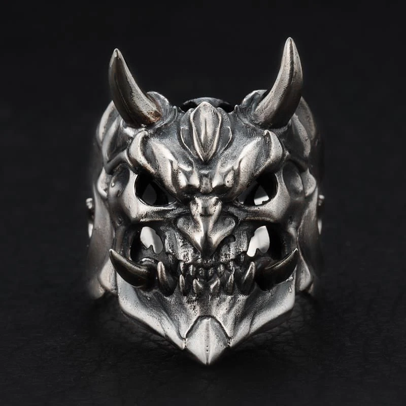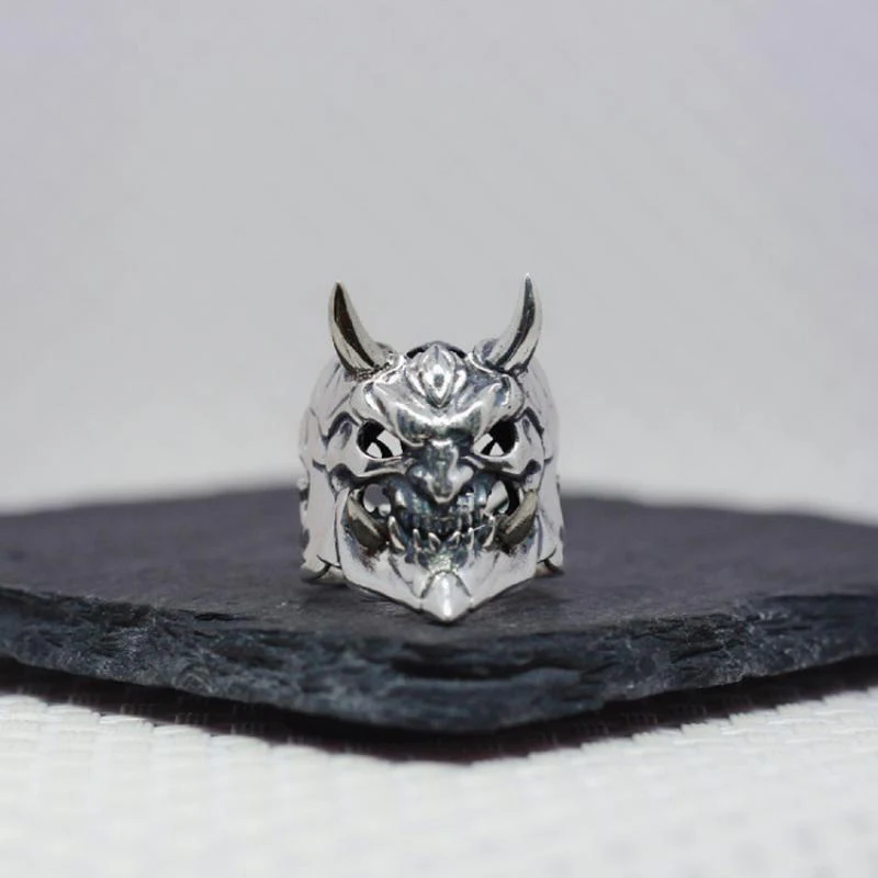 Кольцо в стиле ретро с изображением маски дьявола из сплава, модные кольца в виде призрака, черепа в японском стиле, мужские и женские популярные ювелирные изделия в подарок