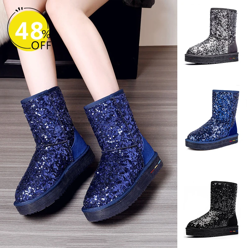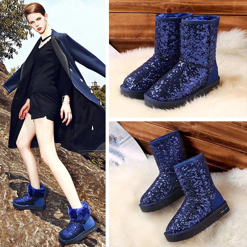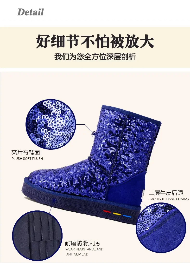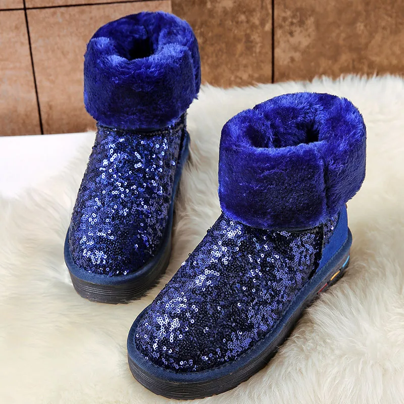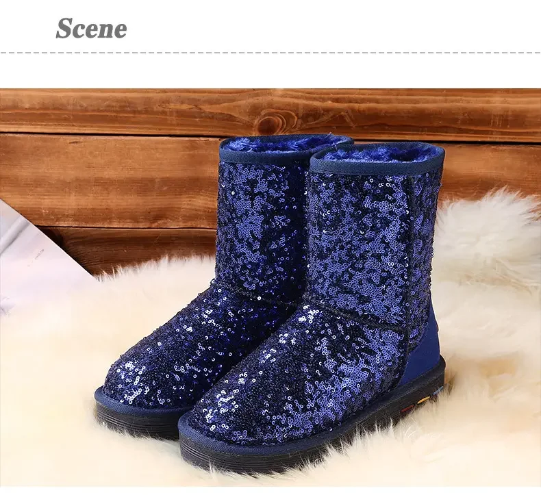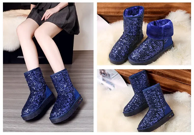 Новинка 2021, женские зимние ботинки Goth, блестящие кожаные плюшевые хлопковые ботинки, женские теплые зимние ботинки из воловьей кожи с блестками, кожаная теплая обувь