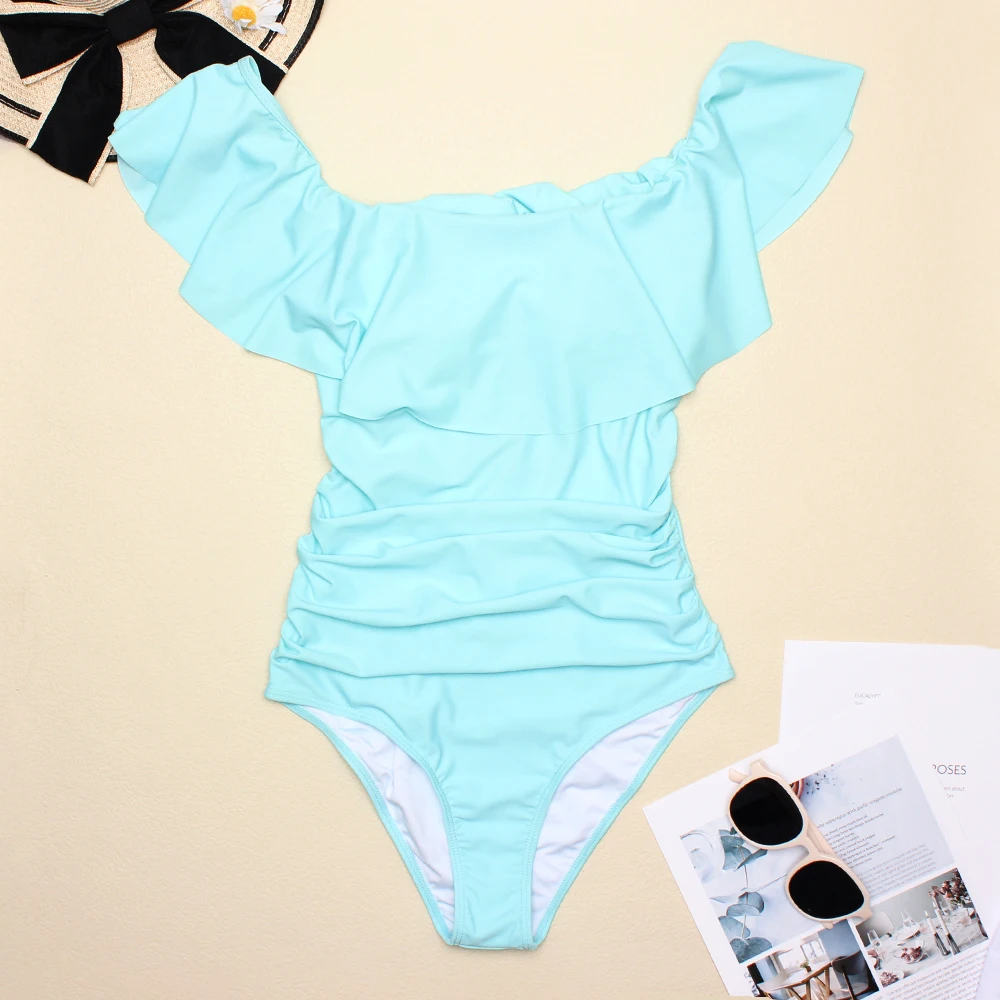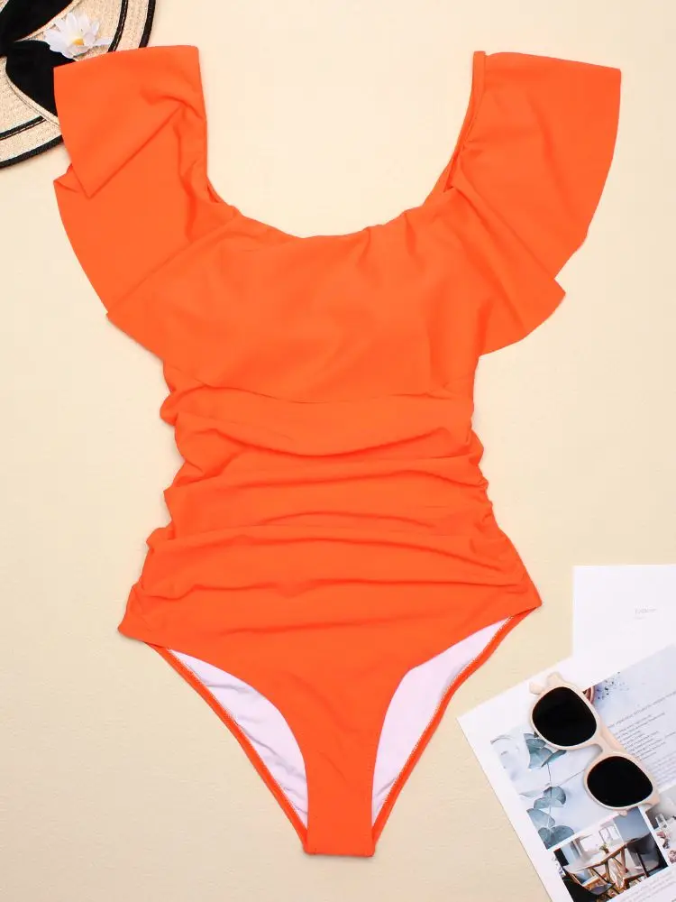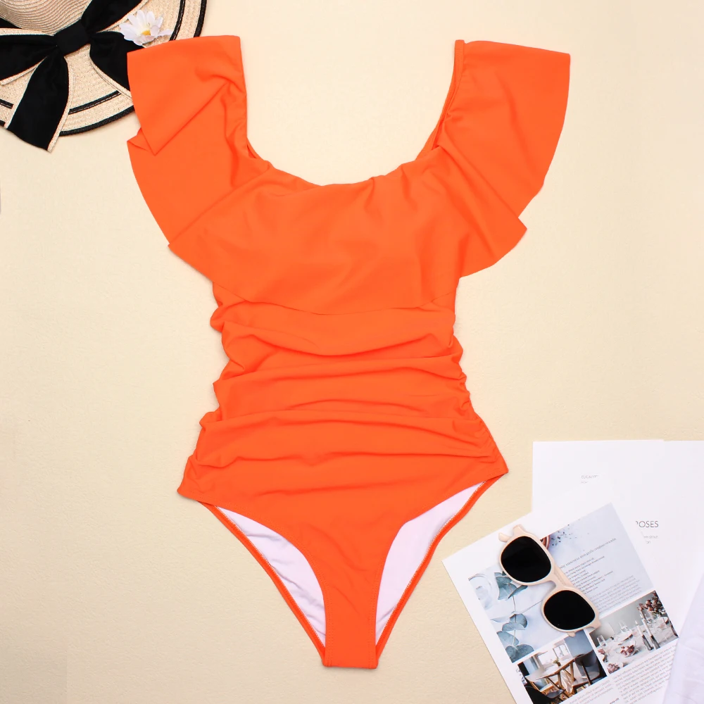 Оранжевые однотонные купальники, женские Сексуальные облегающие боди-бандо с оборками, бандажные монокини с вырезами на спине, летние пляжные купальники