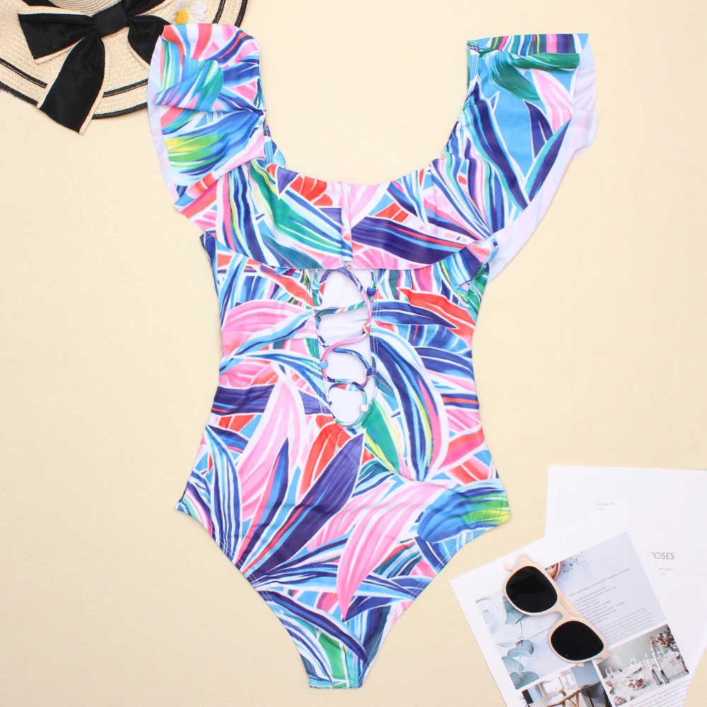 Женский слитный купальник с цветочным принтом, пляжные купальные ко...