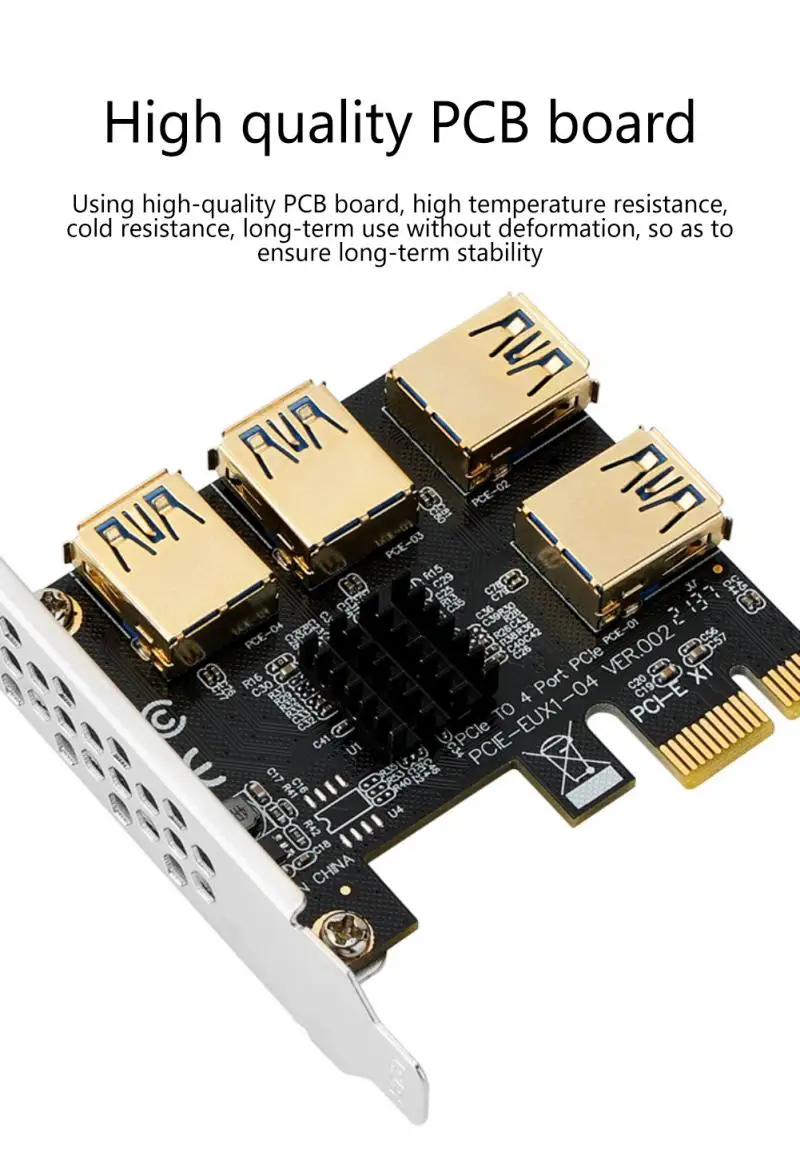 Новая карта расширения Gold PCIE PCI-E, от 1 до 4 USB 3,0, усилитель концентратора 1X X16 PCI Express 1X 16X, адаптер для майнинга биткоинов ETH