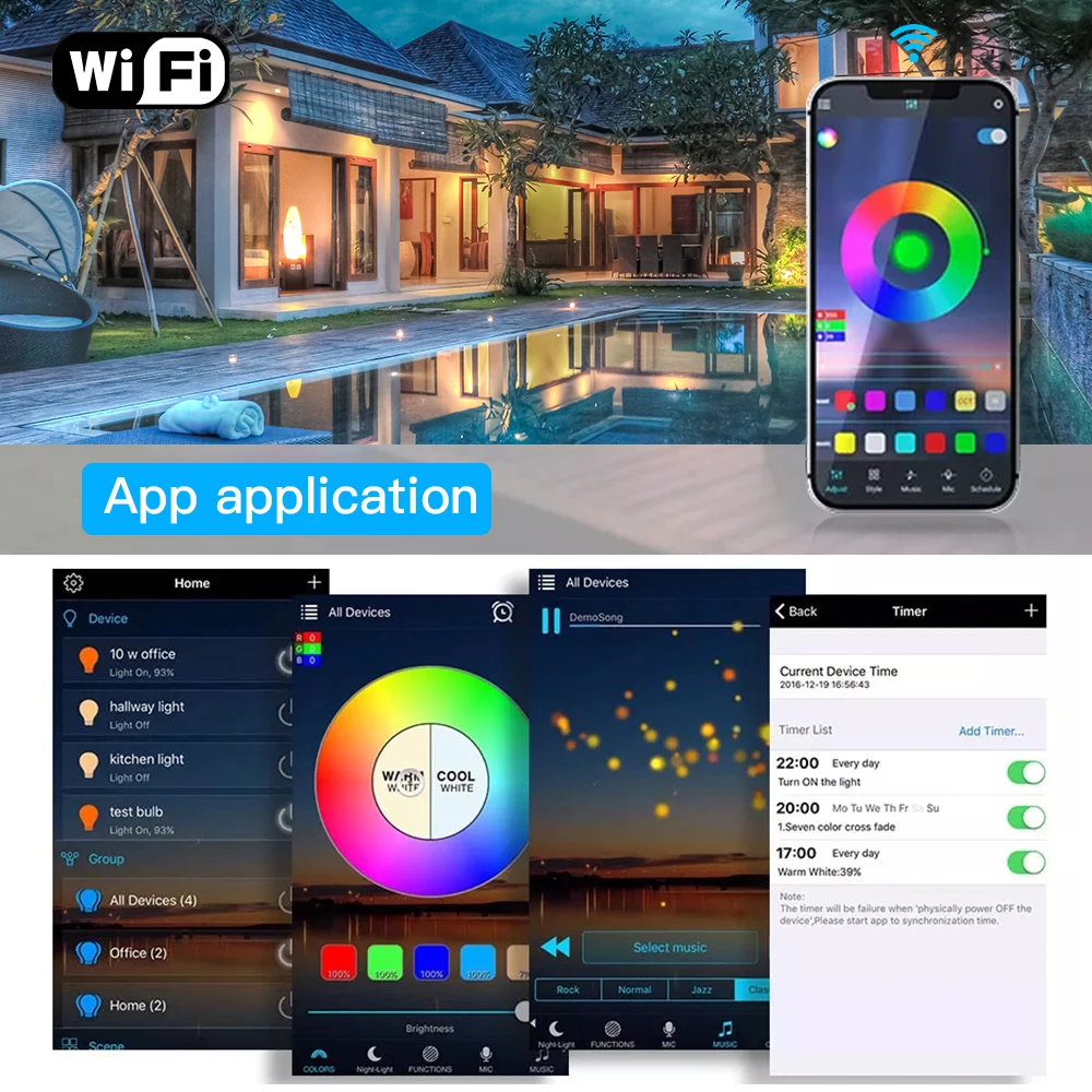 3) управление led 24key IR RGB контроль ler и WiFi контроль, легко и удобно управлять вкл/выкл, Музыка syn, Голосовая команда, яркость, светильник, цвет и мигающая скорость и т. Д.