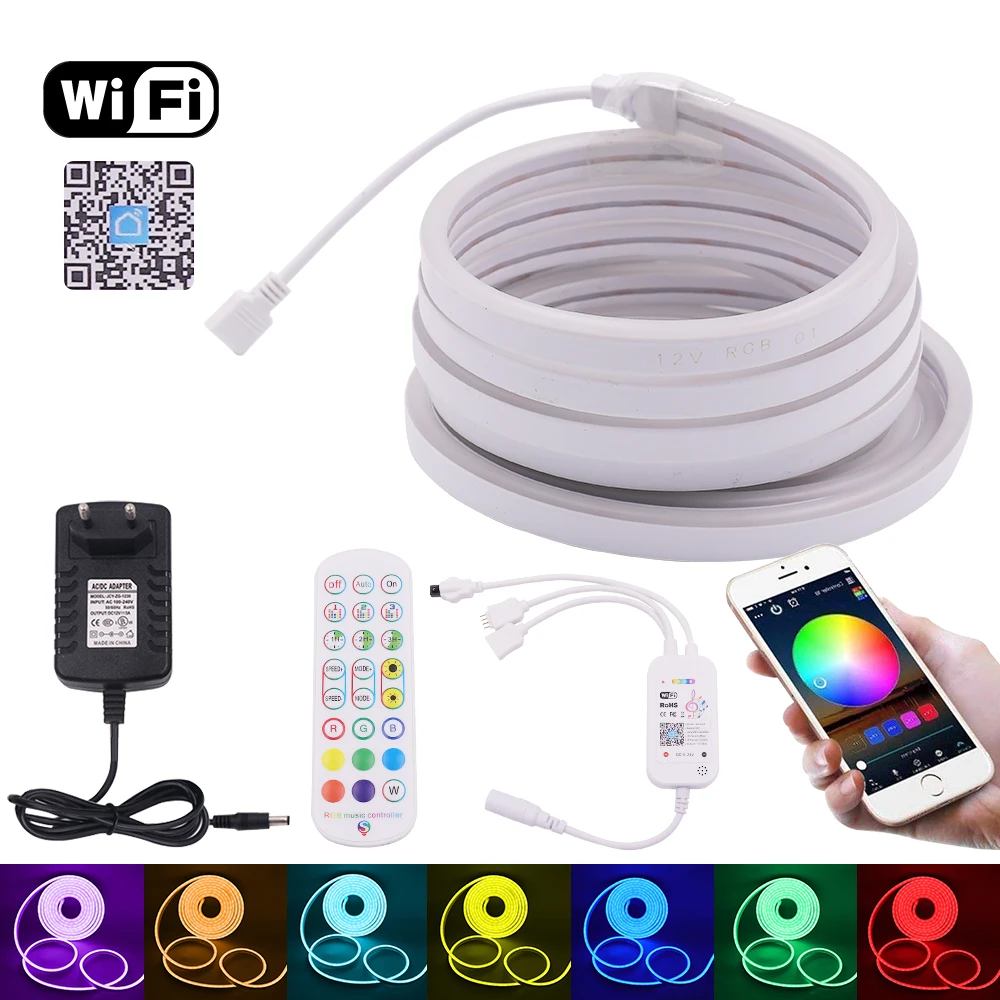 Управление: 24Key IR RGB Control ler и WiFi control (функции: вкл/выкл, светильник, цвета, яркость, мигающая скорость, синхронизация музыки, Голосовая команда и т. д.)