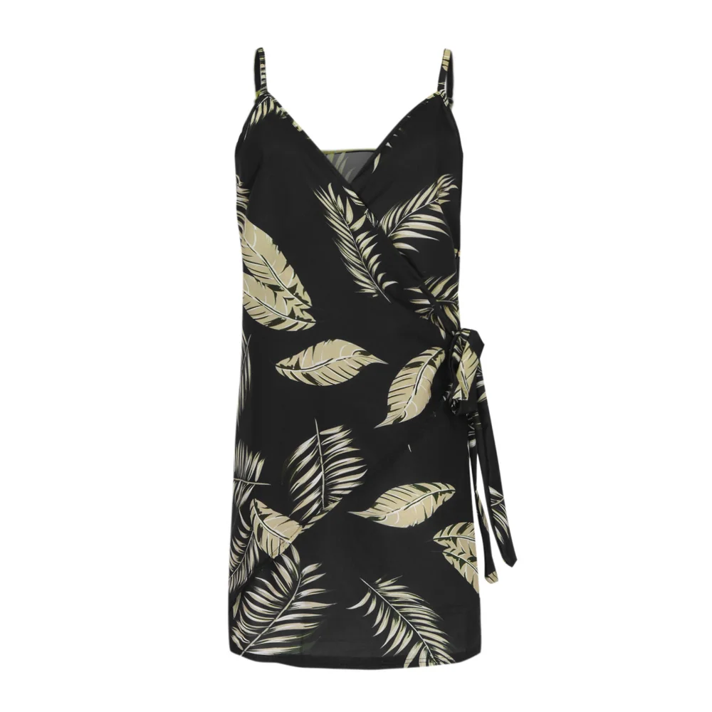 Платье-комбинация женское с принтом, пикантное модное пляжное мини-платье с V-образным вырезом, открытой спиной, на шнуровке, элегантное облегающее, на лето