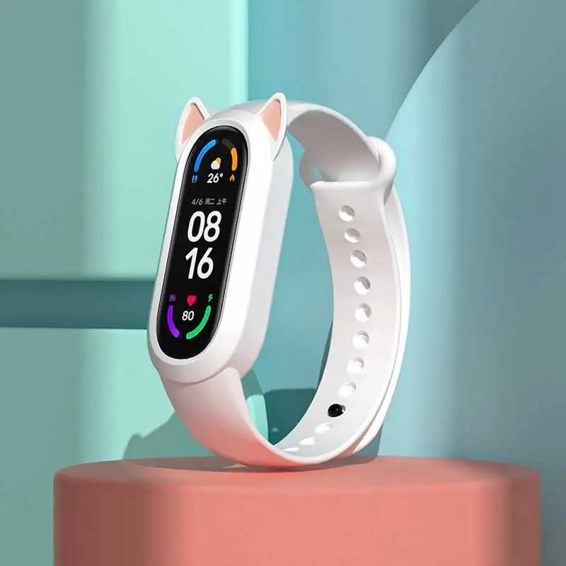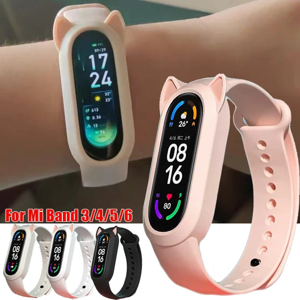 Ремешок силиконовый для Xiaomi Mi Band 6 5 4 3, сменный Браслет из ТПУ с кошачьими ушками для Xiaomi Band 4 5
