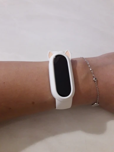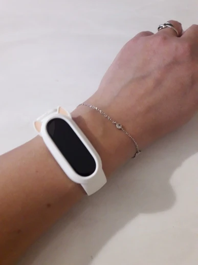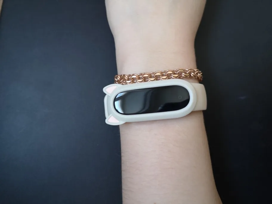 Очень миленький браслетик. На 4 Mi band подошёл отлично. Экран облегает плотно, не люфтит. Брала в сером цвете. Он скорее ближе к молочному. Самое миленькое в браслете-ушки. Я очень довольна покупкой. Доставка быстрая, на адрес Пятерочки, что очень удобно. С подавцом не общалась.