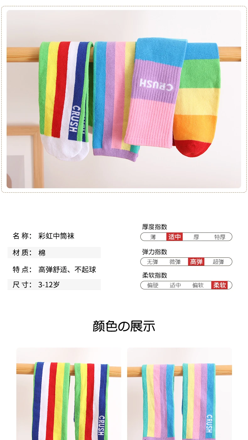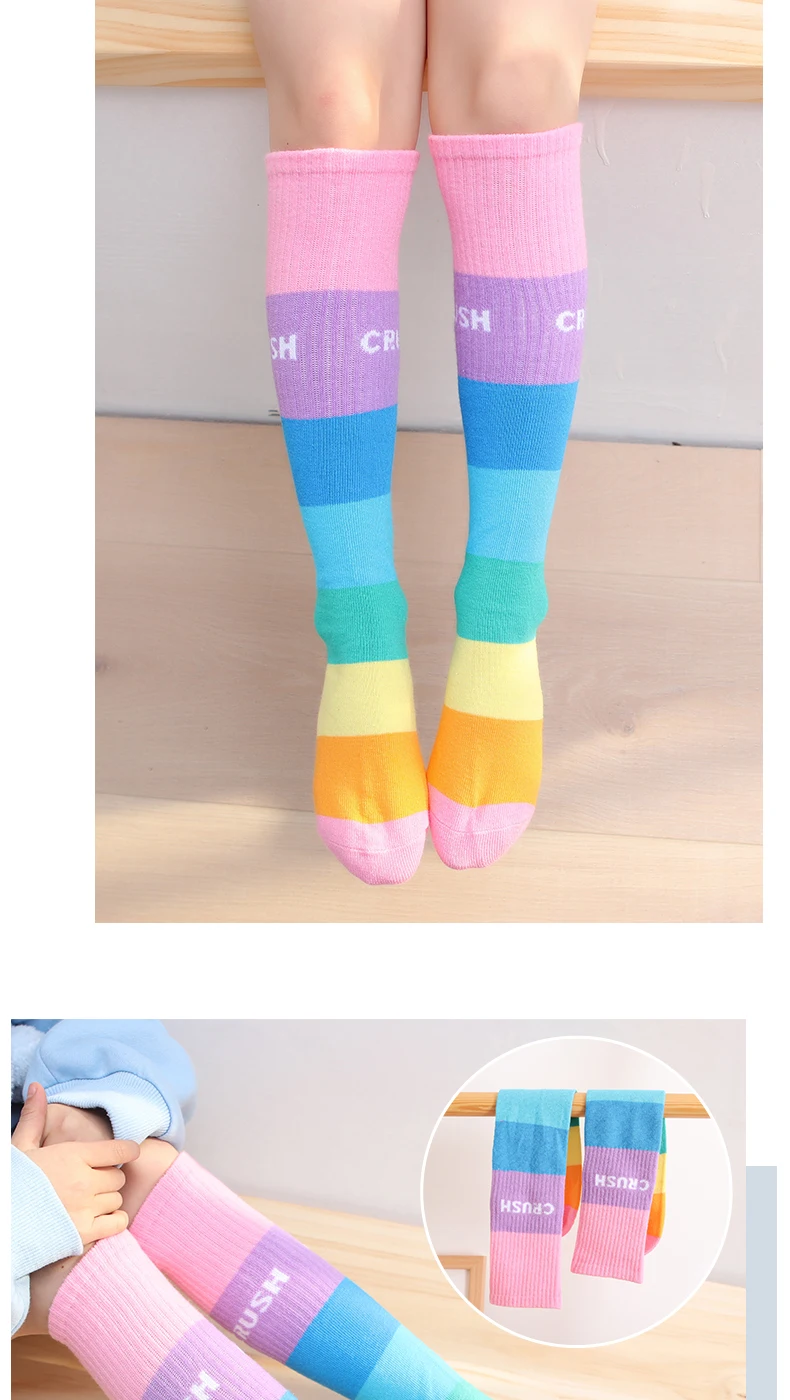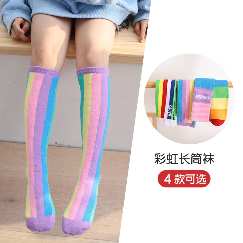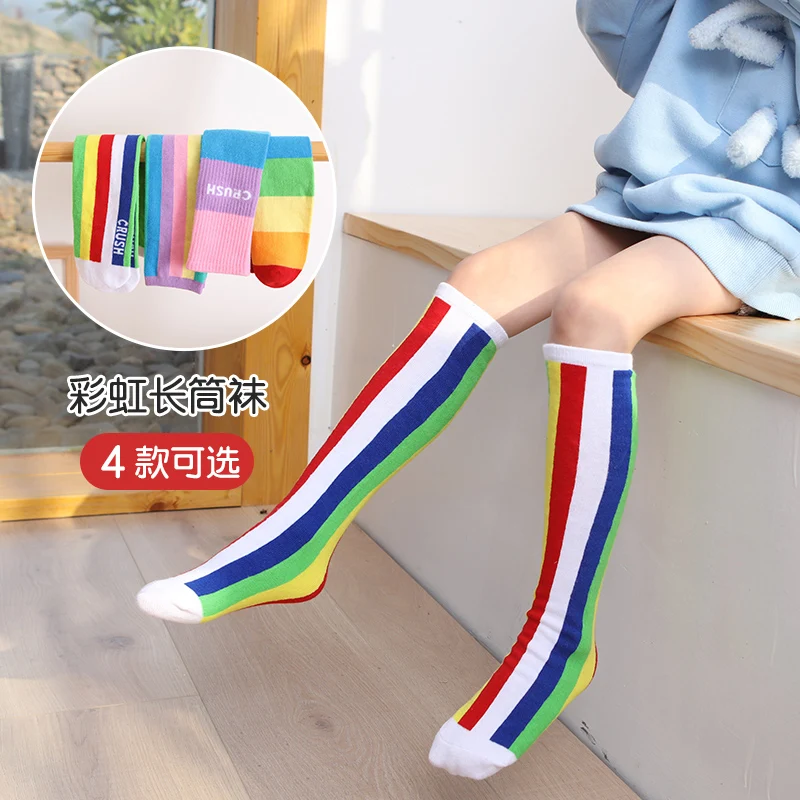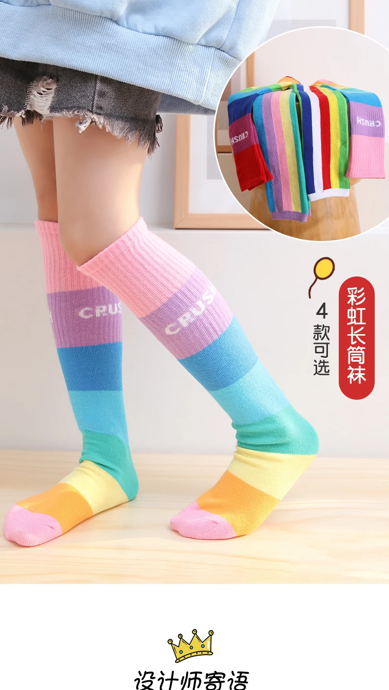 Хлопковые короткие чулки для девочек на весну и осень, милые разноцветные детские гольфы радужной расцветки, гольфы для младенцев, гольфы