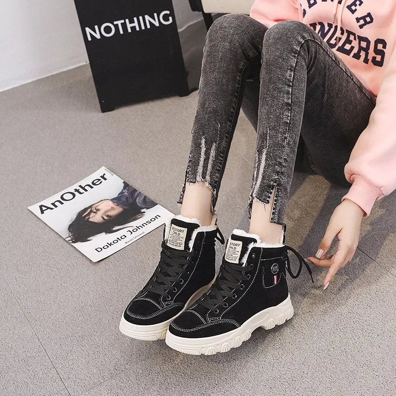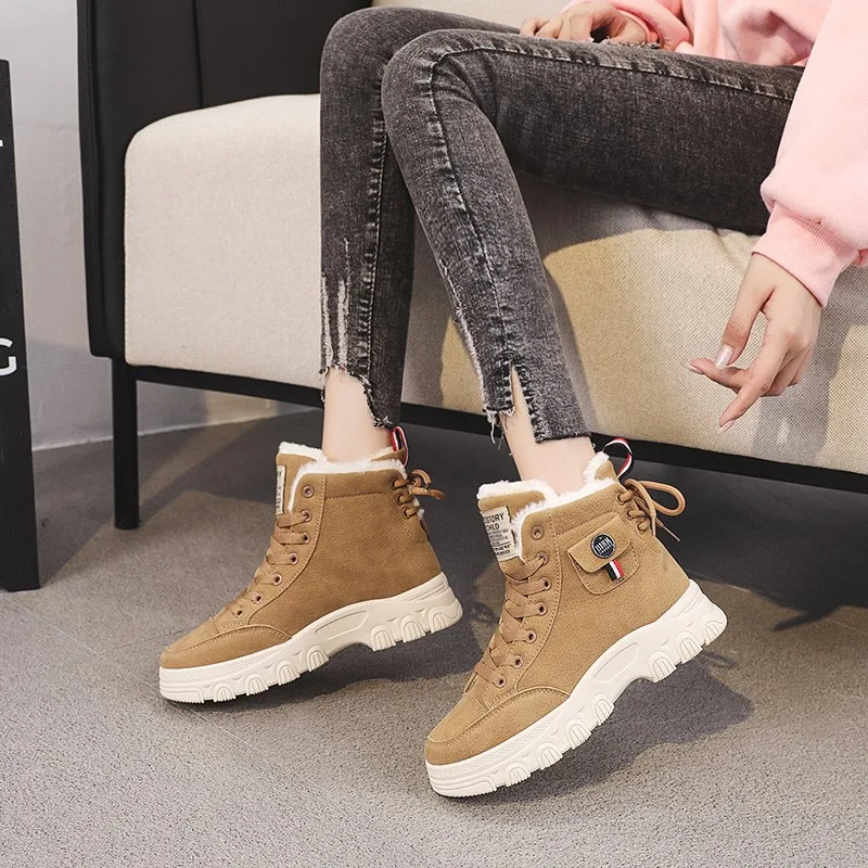 Женские ботинки телесного цвета, ботильоны на толстой подошве, зимние ботинки, новинка 2021, женская обувь, повседневная спортивная обувь, подходящая ко всему женская обувь