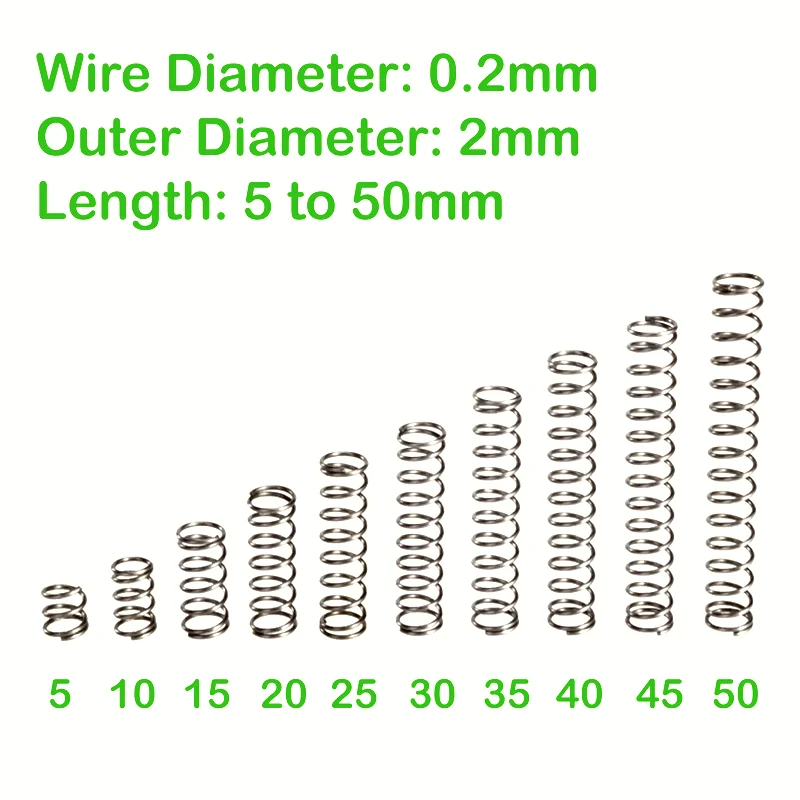 Wire Diameter 0.2mm Outer Diameter 2mm Length 5mm to 50mm Compression Spring Return Small Spring