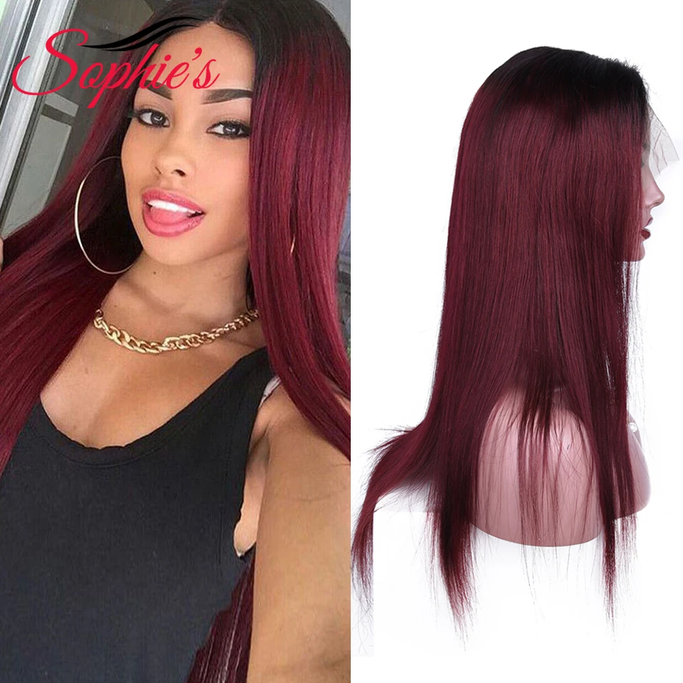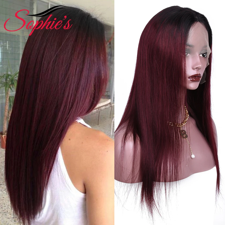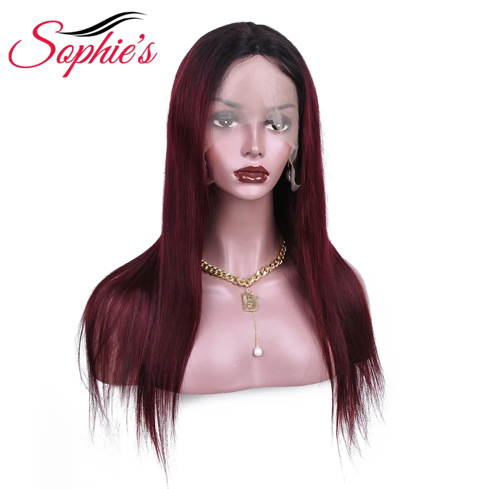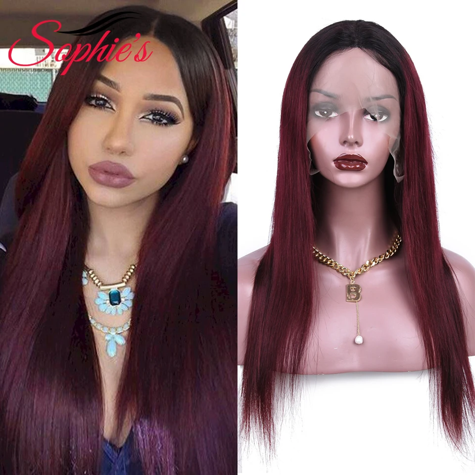 Человеческие парики Sophies T1B99J 4*4 на сетке для черных женщин, бразильские прямые волосы без повреждений, предварительно выщипанные волосы, плотность 180% 99J