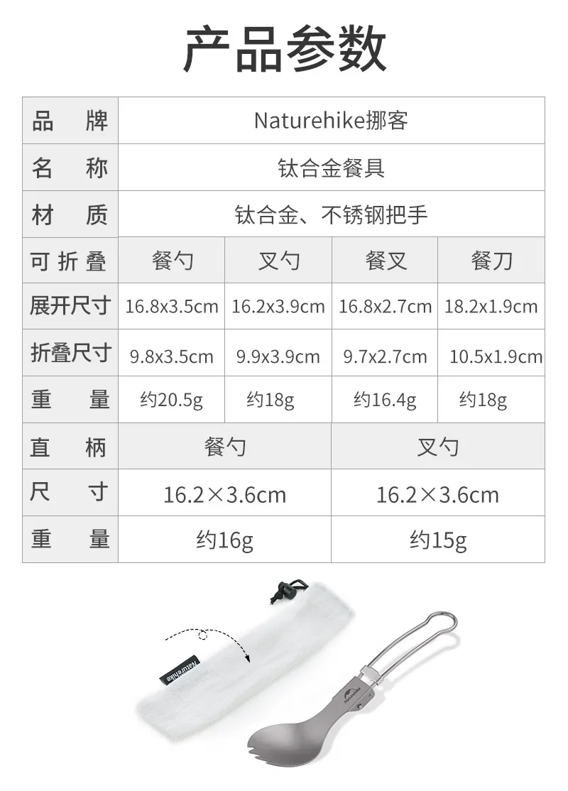 Столовая посуда 3 в 1 Naturehike из титана, столовые приборы, нож, ...