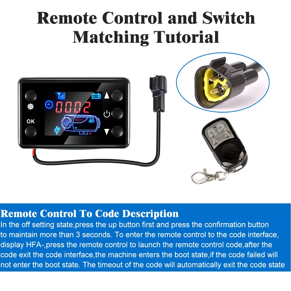 универсальный китайский пееключатель не подходит к китайскому отопителю! зря потратил время и деньги! Он просто выдаёт ошибку и не реагирует на пульт! Абсолютно безполезная вещь!