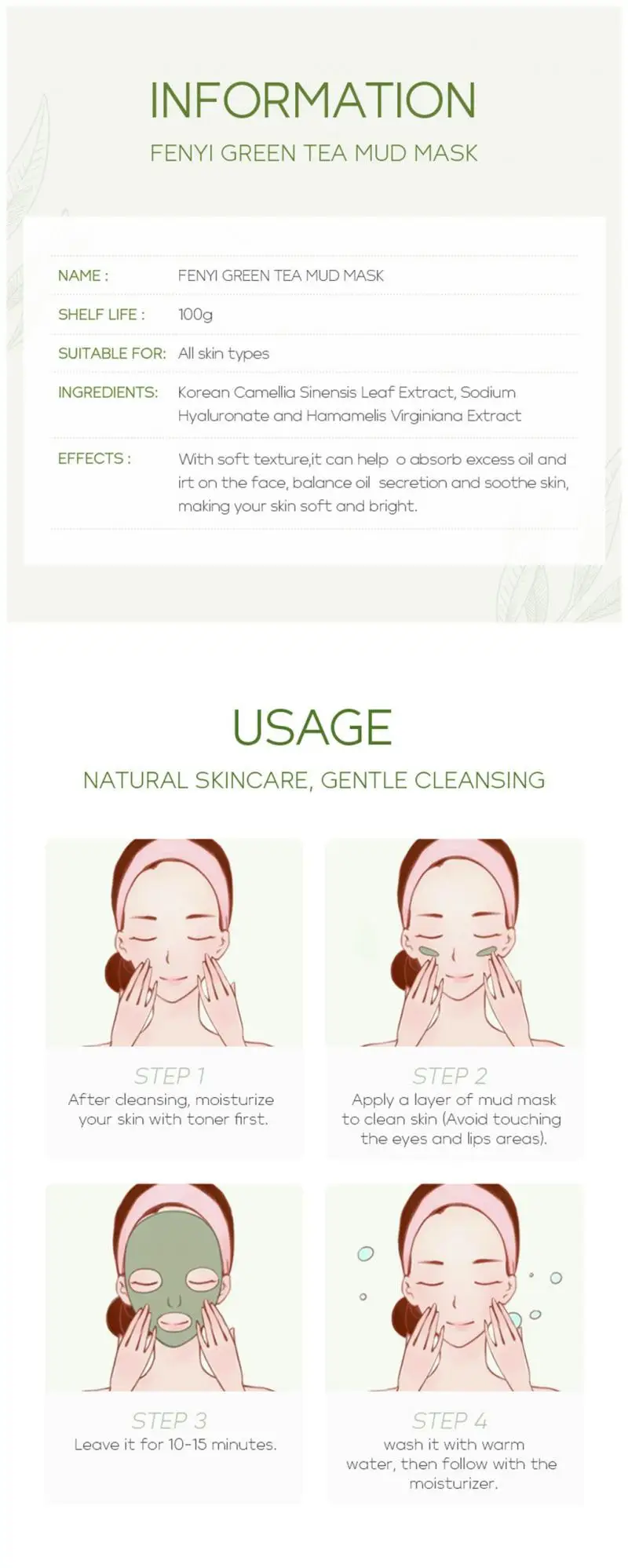 Грязевая маска для лица с зеленым чаем глубоко очищающая поры осветляющая питательная маска для лица Товары для ухода за кожей крем для лица для красоты Женщины TSLM1