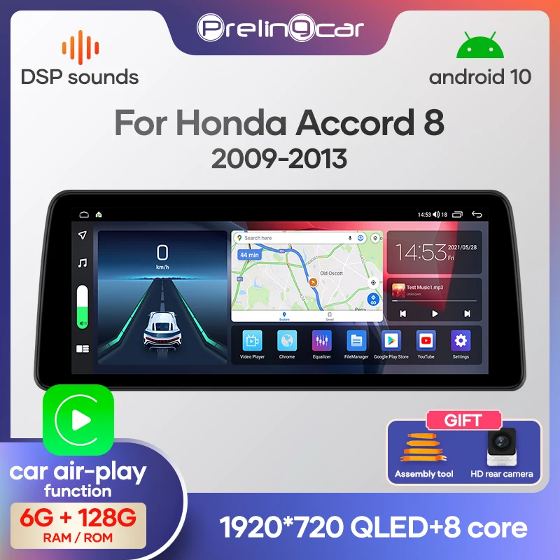 12,3 дюймов для Honda europe Accord 8 2008-2013 Android 10, автомобильное радио, стереомагнитола, мультимедийная навигация GPS 6G 128G