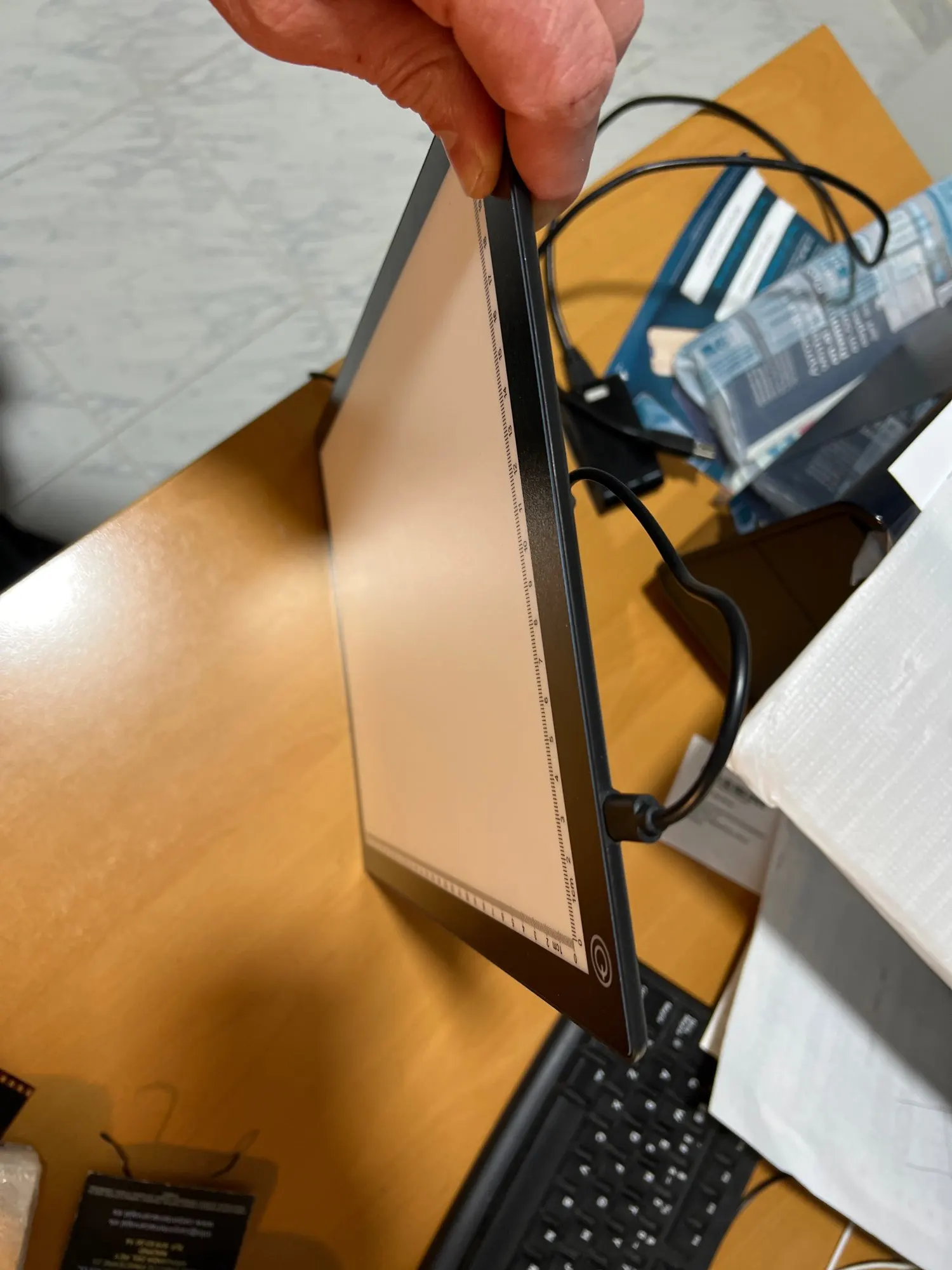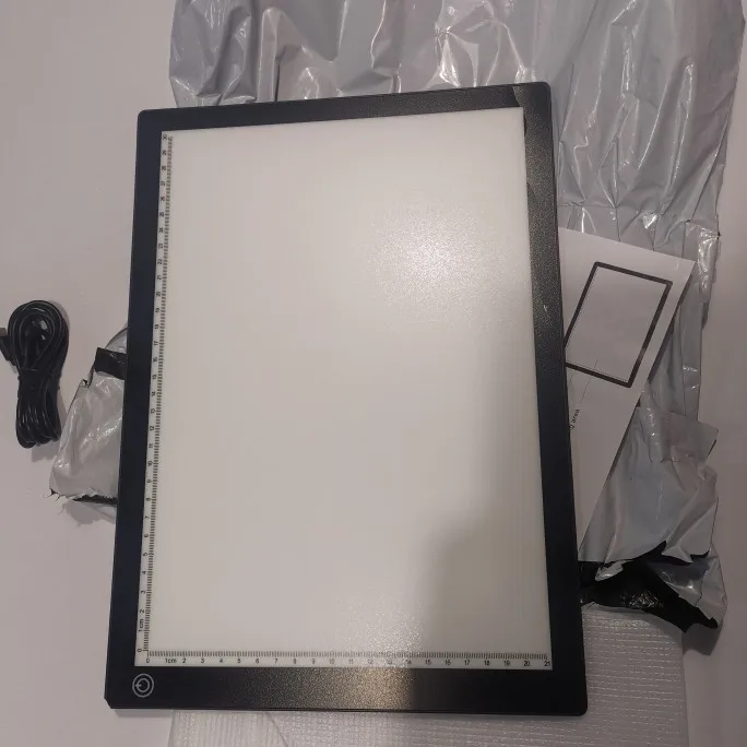 добре читайте опис, от я облажалася, подумала, що планшет графічний, а то підсвітку для копіювання малюнків. тепер маю науку. виглядає як на фото. є декілька режимів освітлення. в комплекті провід для підключення до комп'ютера. доставка Новою поштою