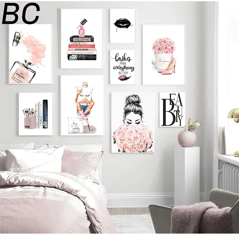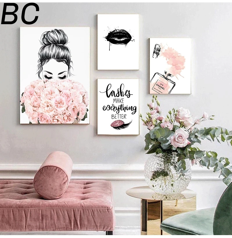 Настенная картина в скандинавском стиле на холсте с изображением черных губ, Женский плакат, печать, простота, парфюм, книги, картина, современный салон, украшение для красоты
