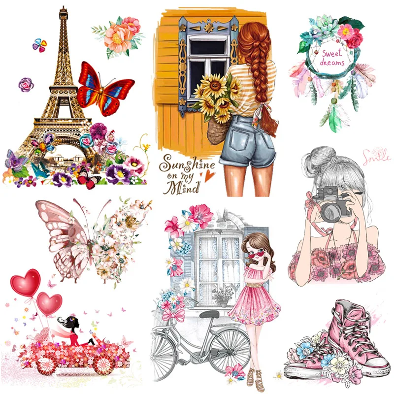 Модные термотрансферные нашивки сделай сам, аппликация для девочек, термоклейкие наклейки для одежды, шитье из винила для детей, одежда, сумки, принт
