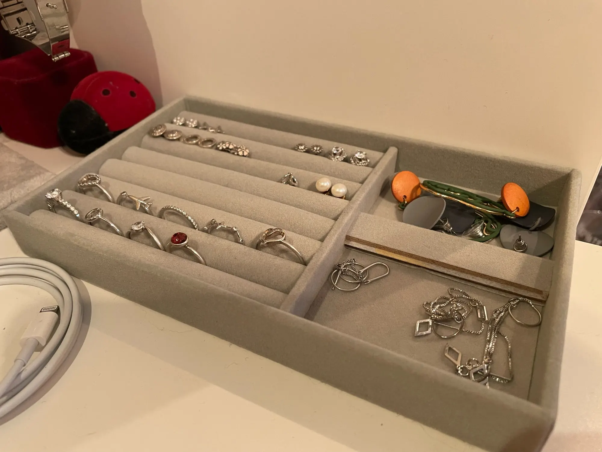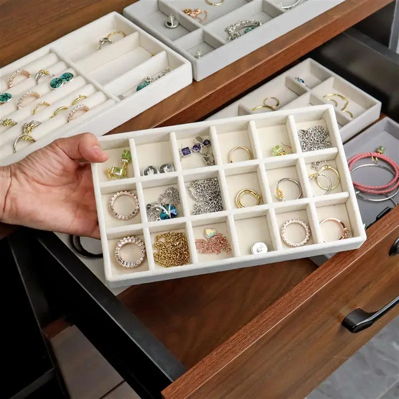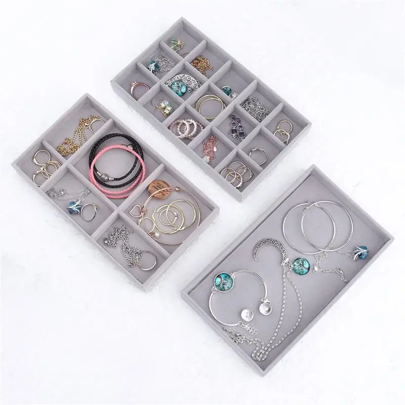 Бархатный поднос для демонстрации ювелирных изделий, хит продаж, Штабелируемый изысканный держатель для ювелирных изделий, портативный органайзер для колец, серег, ожерелий, коробка
