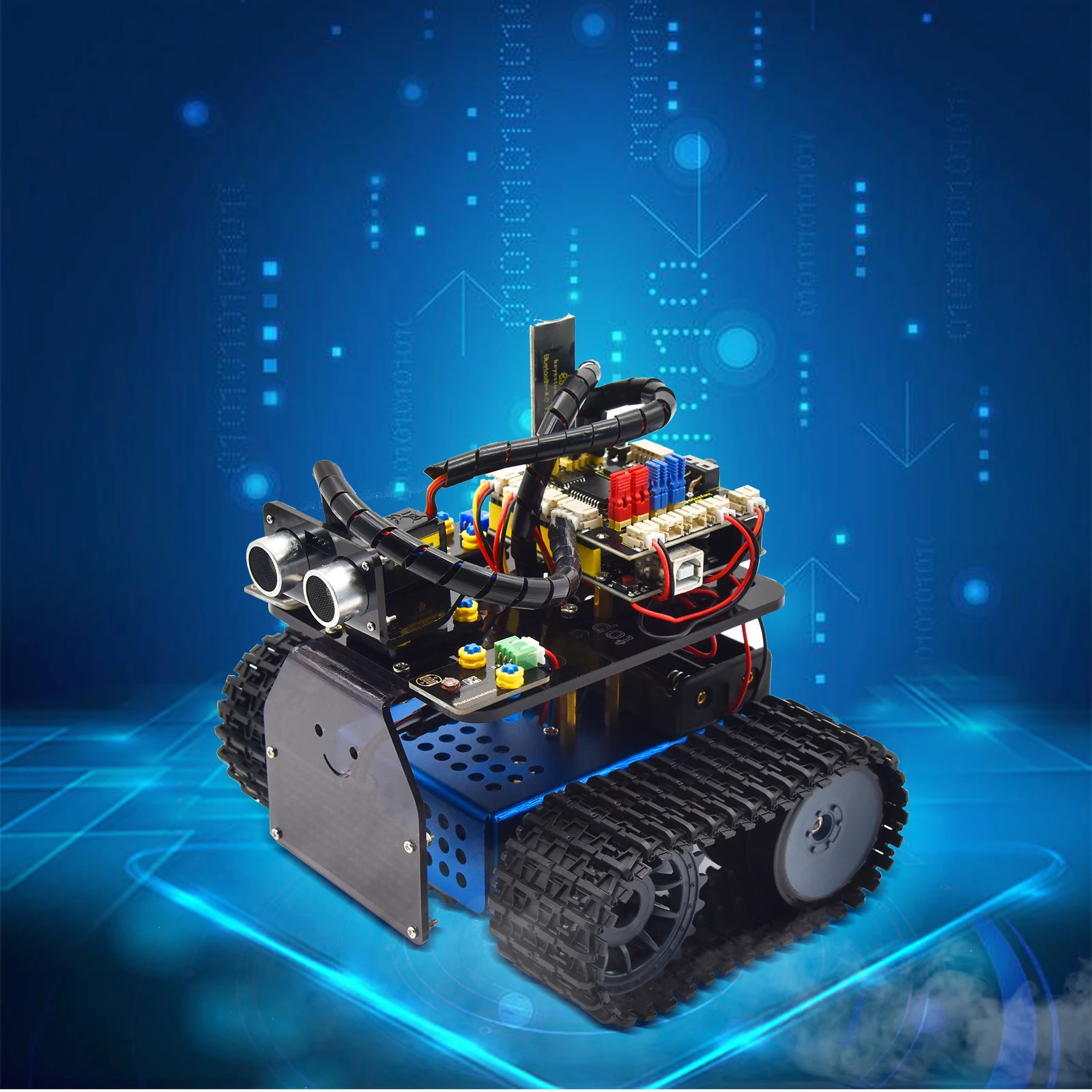 Этот стержень образовательный V3.0 танк-робот обновлен, добавив линейное отслеживание и функцию пожаротушения. Он энергично улучшает отношения между детьми и родителями, и искрит воображение детей через программирование и кодирование.В процессе сборки вы можете увидеть несколько функций, таких как следующий светильник, отслеживание линии, ИК и пульт дистанционного управления BT, регулировка скорости и так далее. Кроме того, есть некоторые мелкие детали, которые помогут вам собрать машину робота.В комплект входят базовые датчики и модули, такие как датчик пламени, датчик BT, датчик избегания препятствий, датчик отслеживания линии и ультразвуковой датчик.Два руководства для языка C и Arduino также подходят для энтузиастов разных возрастов.Это действительно лучший выбор для вас.