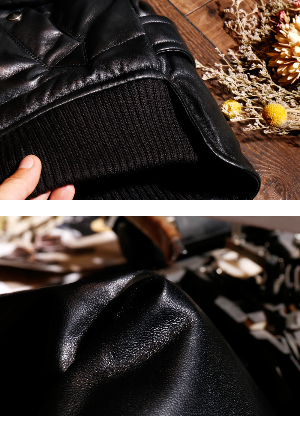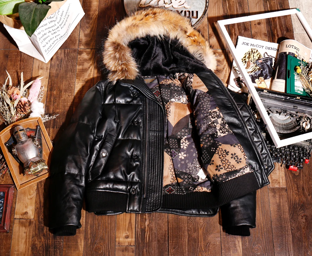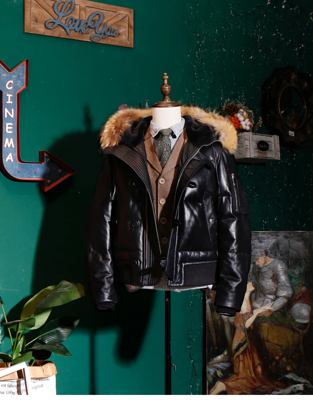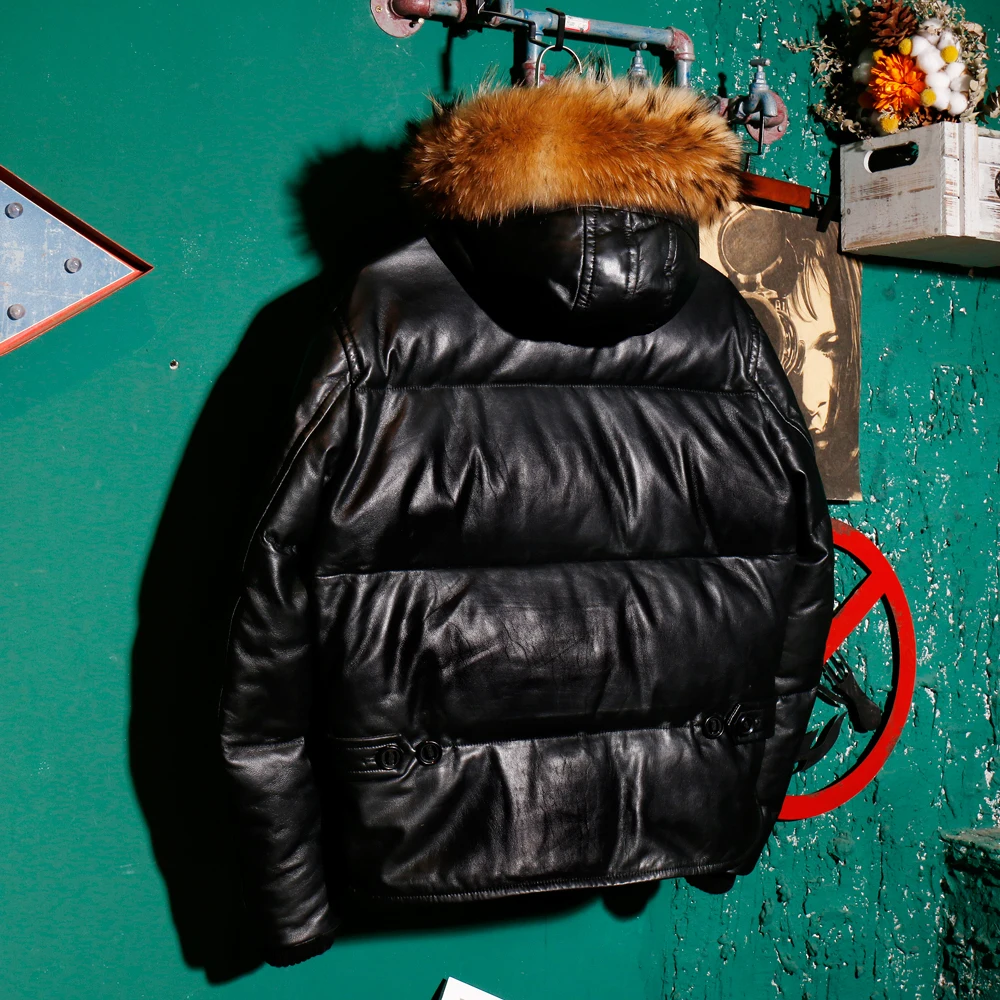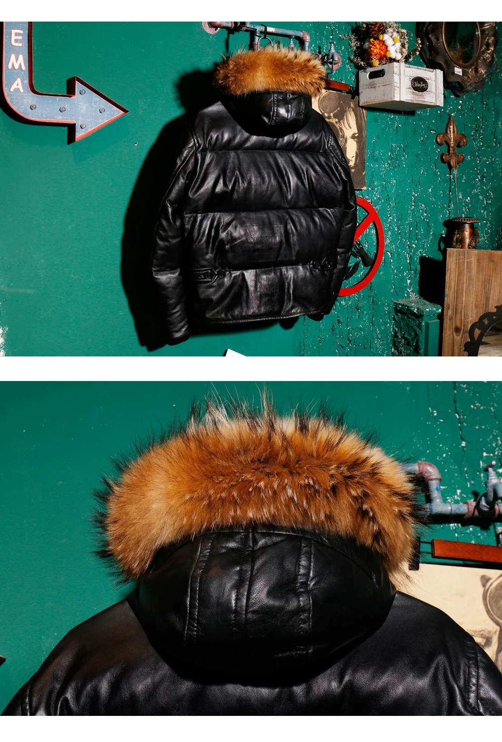 Мужская куртка из натуральной овечьей кожи, с воротником из натурального меха, 480 г, 90% пух гусиных перьев, большой размер
