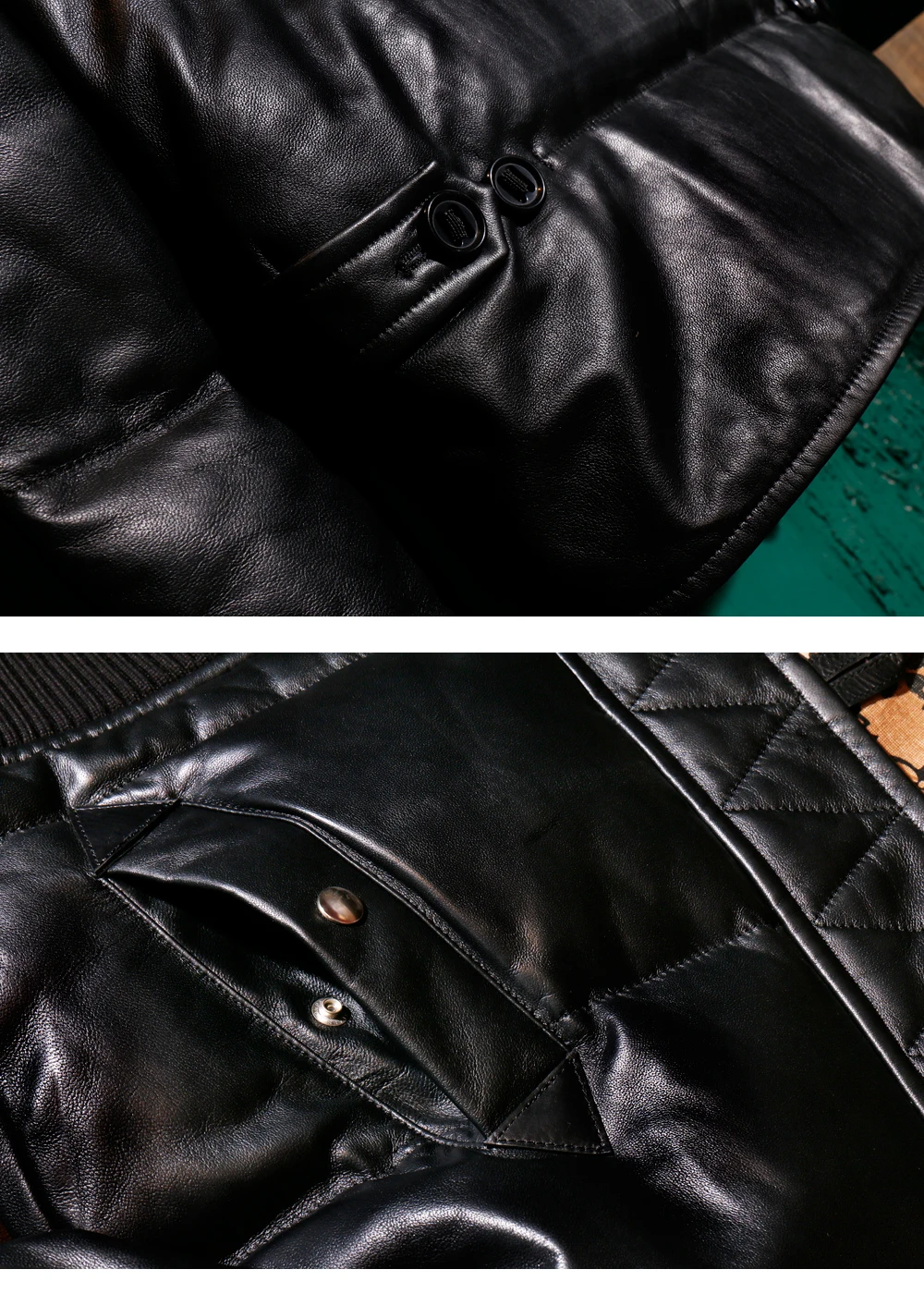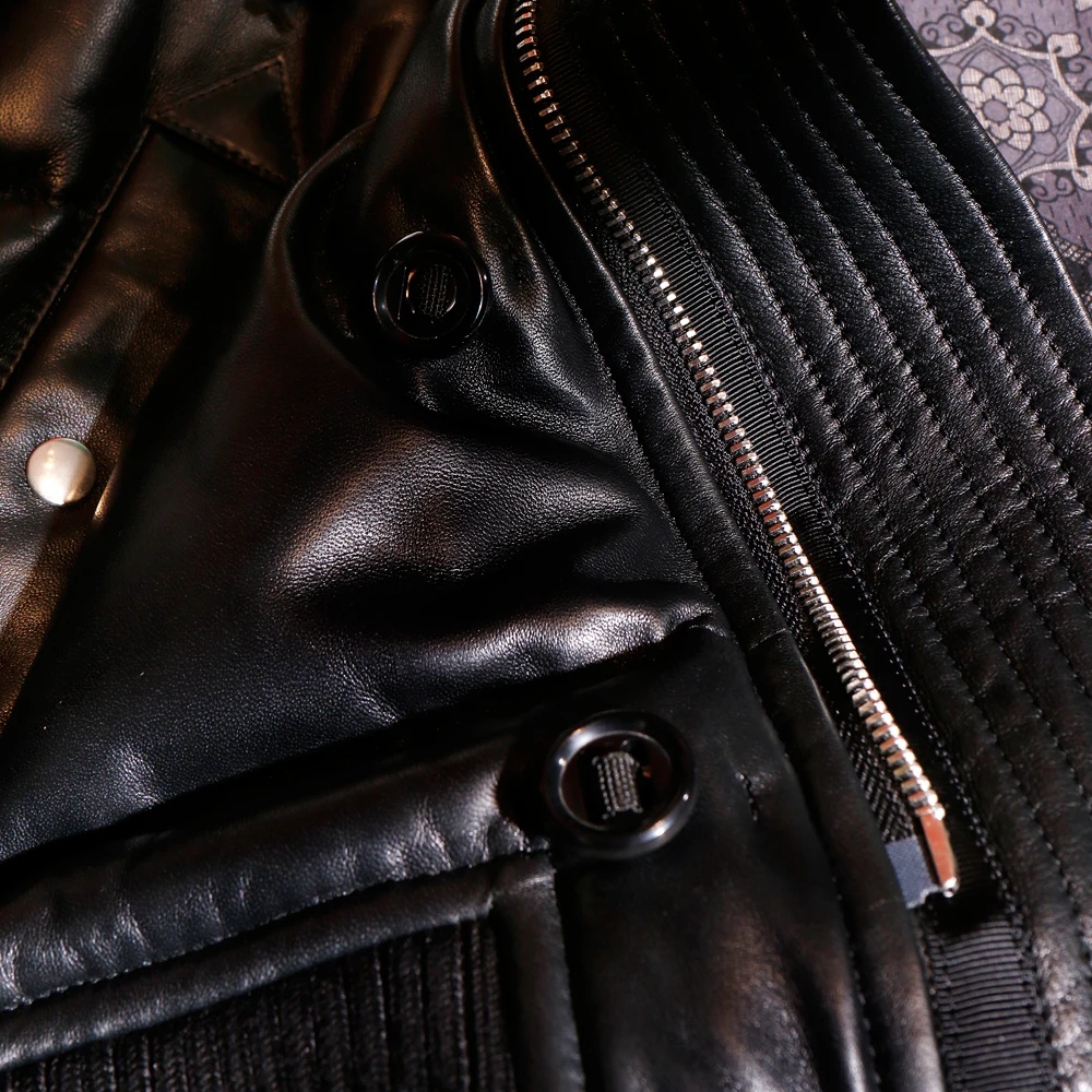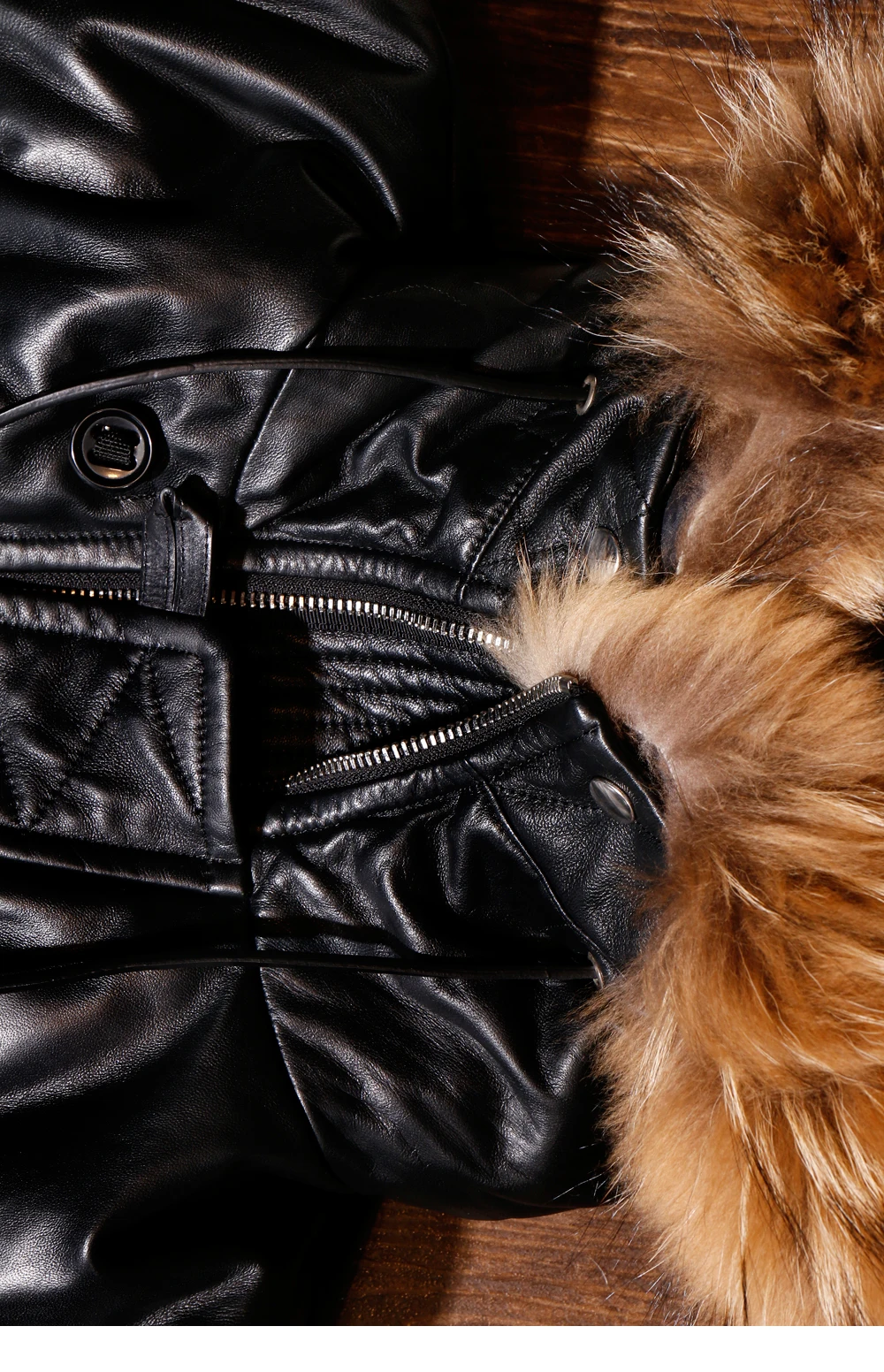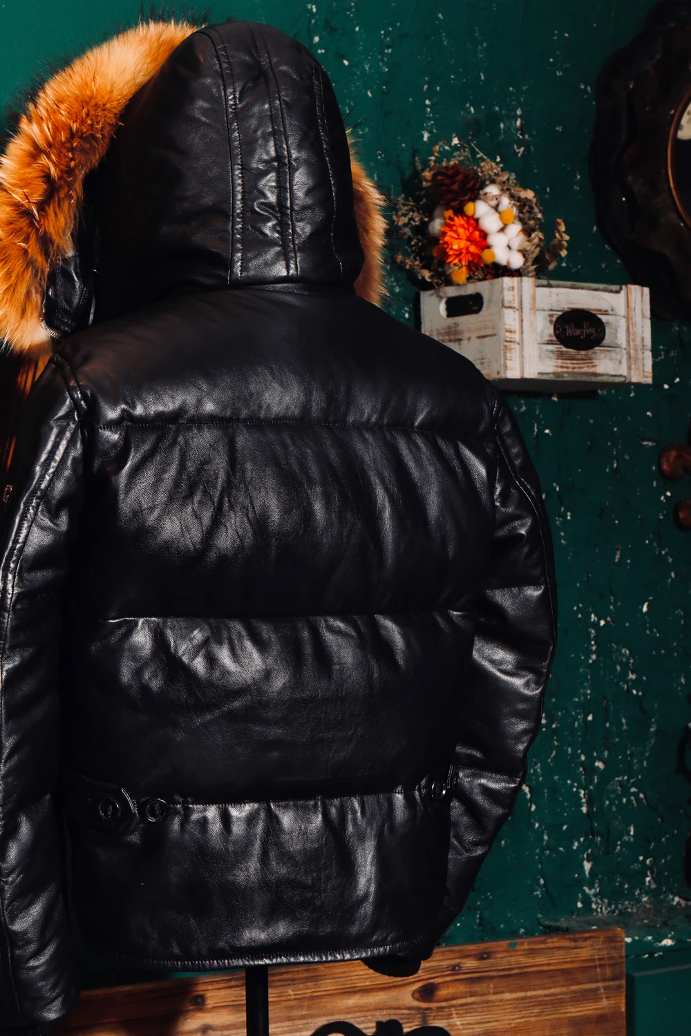 Мужская куртка из натуральной овечьей кожи, с воротником из натурального меха, 480 г, 90% пух гусиных перьев, большой размер