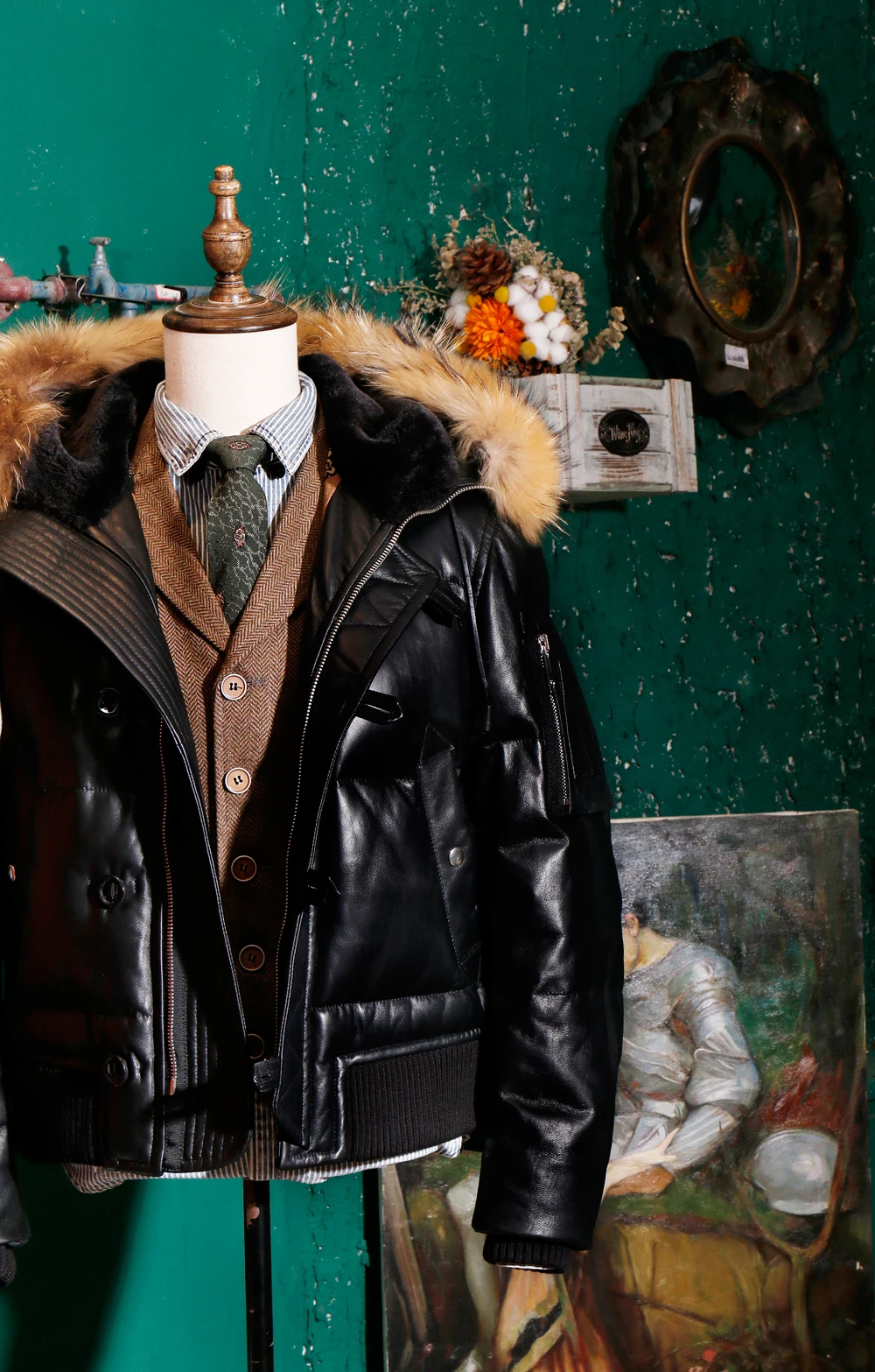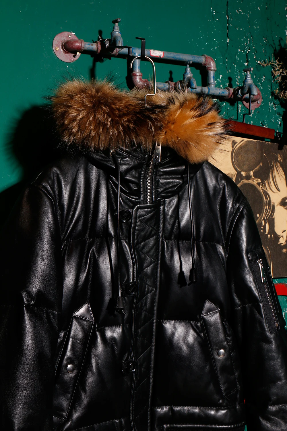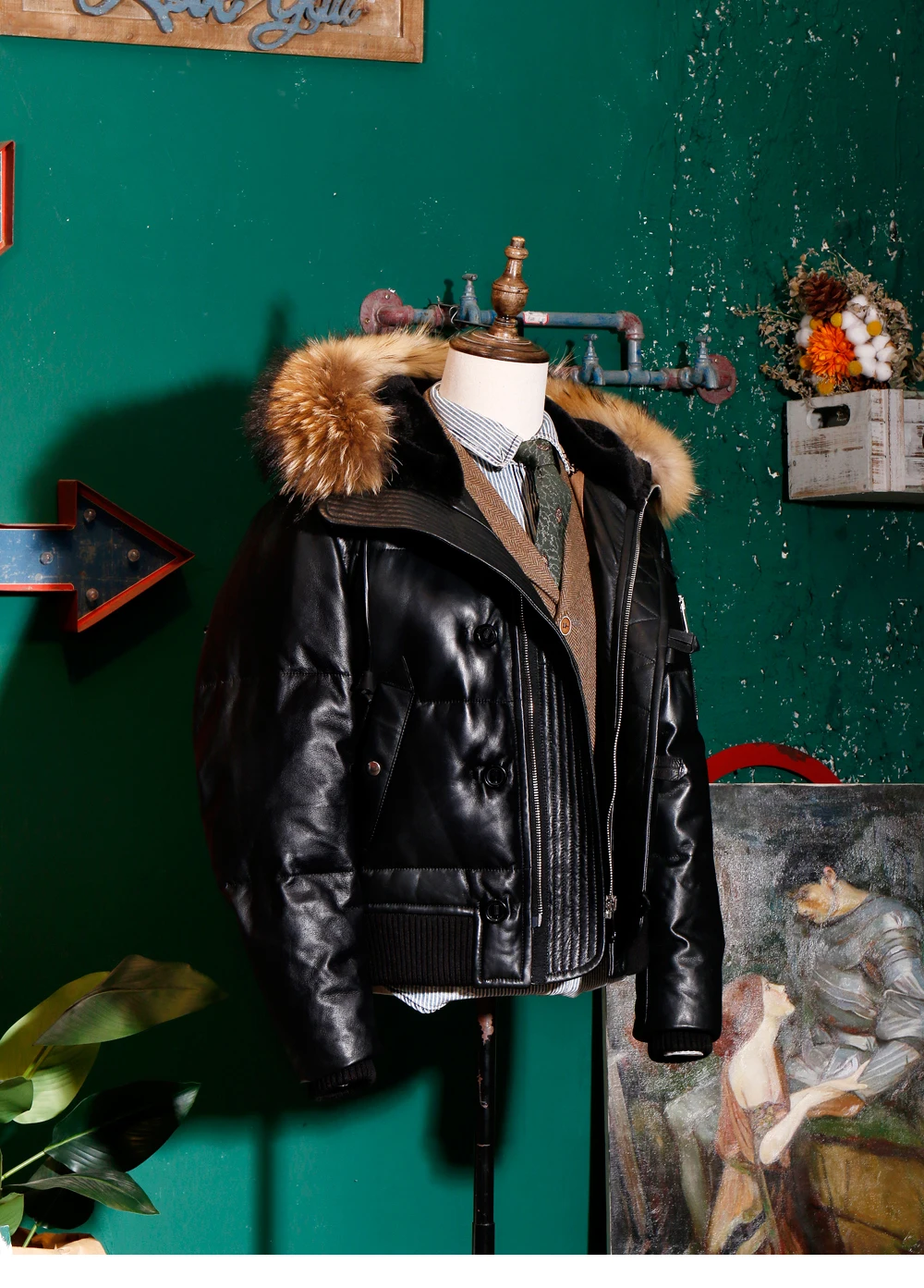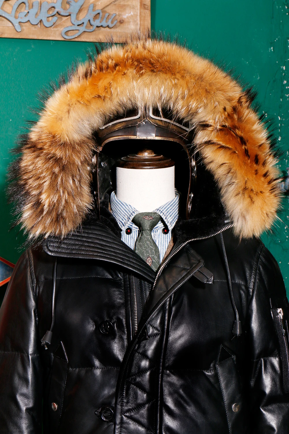 Мужская куртка из натуральной овечьей кожи, с воротником из натурального меха, 480 г, 90% пух гусиных перьев, большой размер