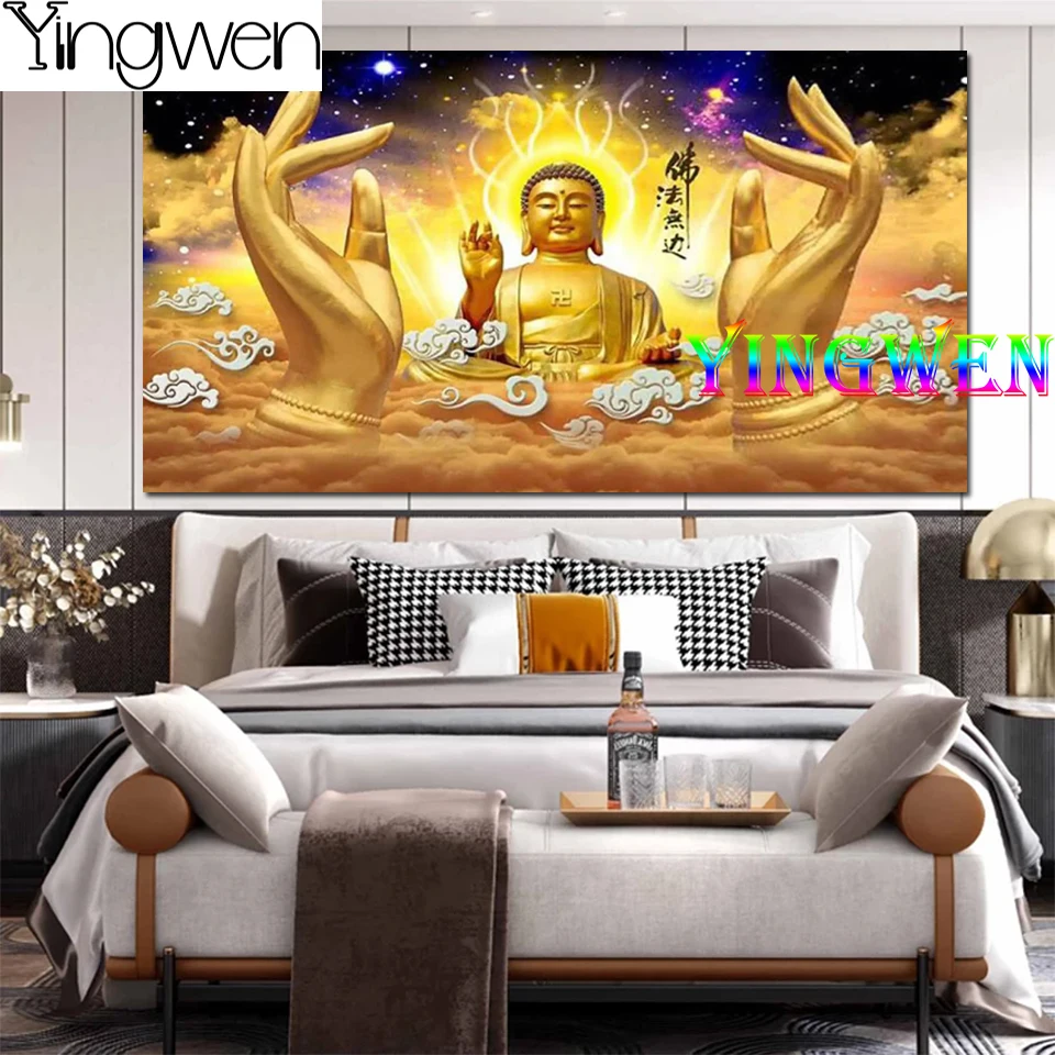 Большой будда картина 5D алмазная Картина новый золотой светильник Золотое тело Будда Алмазная мозаика Natal Будда крестиком религия
