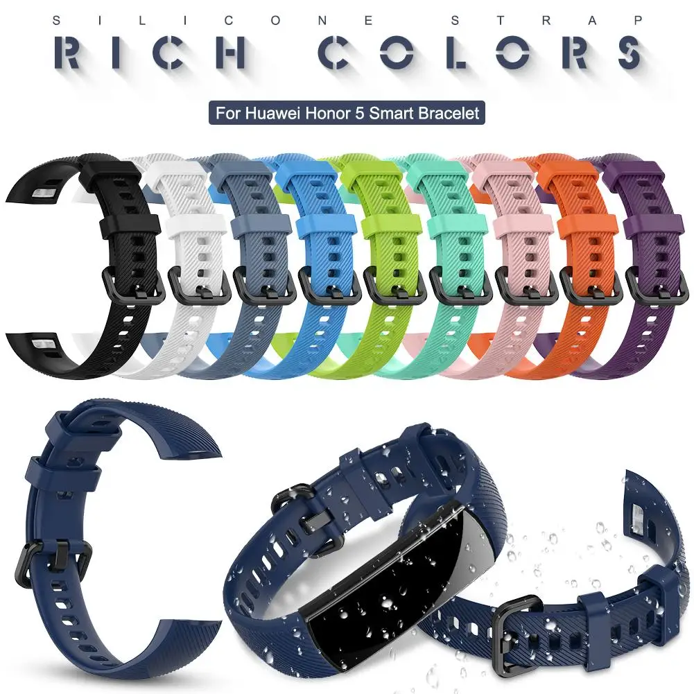 Ремешок силиконовый для Huawei Honor Band 5, сменный Браслет для Huawei Honor Band 5, аксессуары, разные цвета
