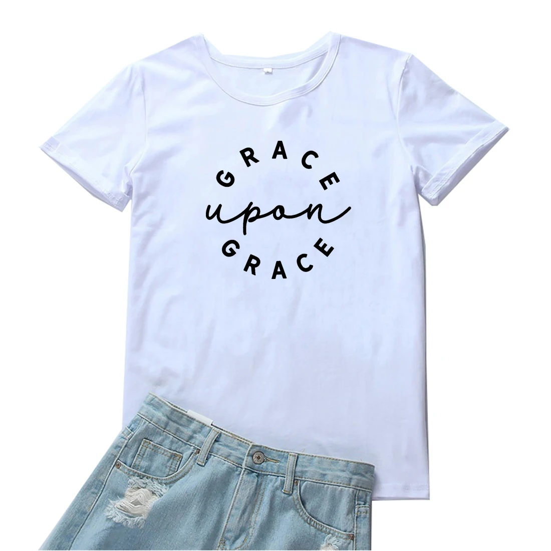 Женская хлопковая Футболка с принтом Grace Upon Grace, забавная летняя футболка с надписью