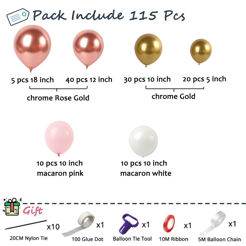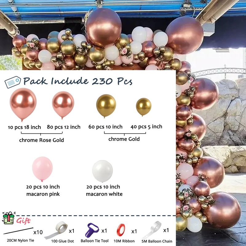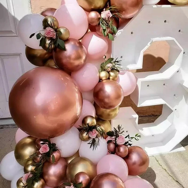 Розовая фотогирлянда с аркой, набор из 152 шт., золотистая латексна...