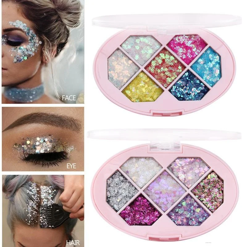 7 цветов блестящие тени для век Алмазные блестки пятиконечная звезда фрагмент Луна тени для век пигмент профессиональная палитра для макияжа глаз